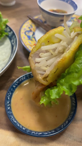 Food: YES! My fav is the banh beo. It’s like a soft pudding savoury paste with topping and u pour fish sauce onto it and slurp the little dishes . Banh bot loc, is more like a chewy tapioca feel that has filling inside and you dip it in the sauce. There’s the banh khoai, I wasn’t a really fan of this, it tastes like a mini banh xeo. I didn’t like the peanut sauce and rather dip this in fish sauce like a banh xeo or I would just order the banh xeo. I came here for more appetizers dish