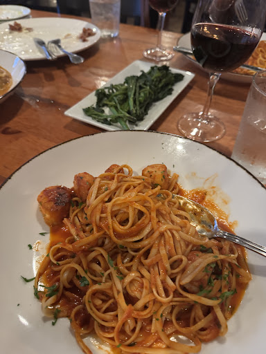 We had 6:30 reservations and were seated right away, so that's a good start. The first time we came here, we had to wait an hour before we were seated even though we had called ahead. So this is the third time I've been to Bucatino, and for an average, I would give it 3.5 stars. I find I much prefer the outdoor dining experience than the indoors. It was much too loud, plus with live entertainment, it was difficult to have a conversation with my fellow diners. When we were seated, we only received one menu for the table. We asked for more, which we did get but 10 minutes later and by then, we had already decided what we were ordering Dinner was a mixed bag. My adult son didn't care for his Caesar Salad, but the calamari was good. The garlic aioli was tasty, but I wish there had been a variety of rings and tentacles. There were only rings. My husband and I ordered the short rib special but were soon informed it was no longer available. It was only 6:30...I guess there were a lot of carnivores that night! So I ordered chicken marsala. I've had better, and the asparagus was a little too al dente for me. My husband liked his Lobster Ravioli. The sauce was light and had a subtle lobster flavor. My son had angel hair pasta with creamy pesto, and his girlfriend ordered the shrimp and scallop scampi. Both loved their dishes. Our server knew it was my son's birthday and brought over a complimentary tiramisu, which was unexpected but appreciated. Everyone liked it. Despite how busy it was, our server (and kitchen) did a great job getting our food to us in a timely manner. He was friendly, efficient,and attentive to our needs. We didn't have to wait too long for our check either. Will I come back a fourth time? I'm not sure, but if I do, I'll wait until summer to dine for dinner, or maybe I'll try...