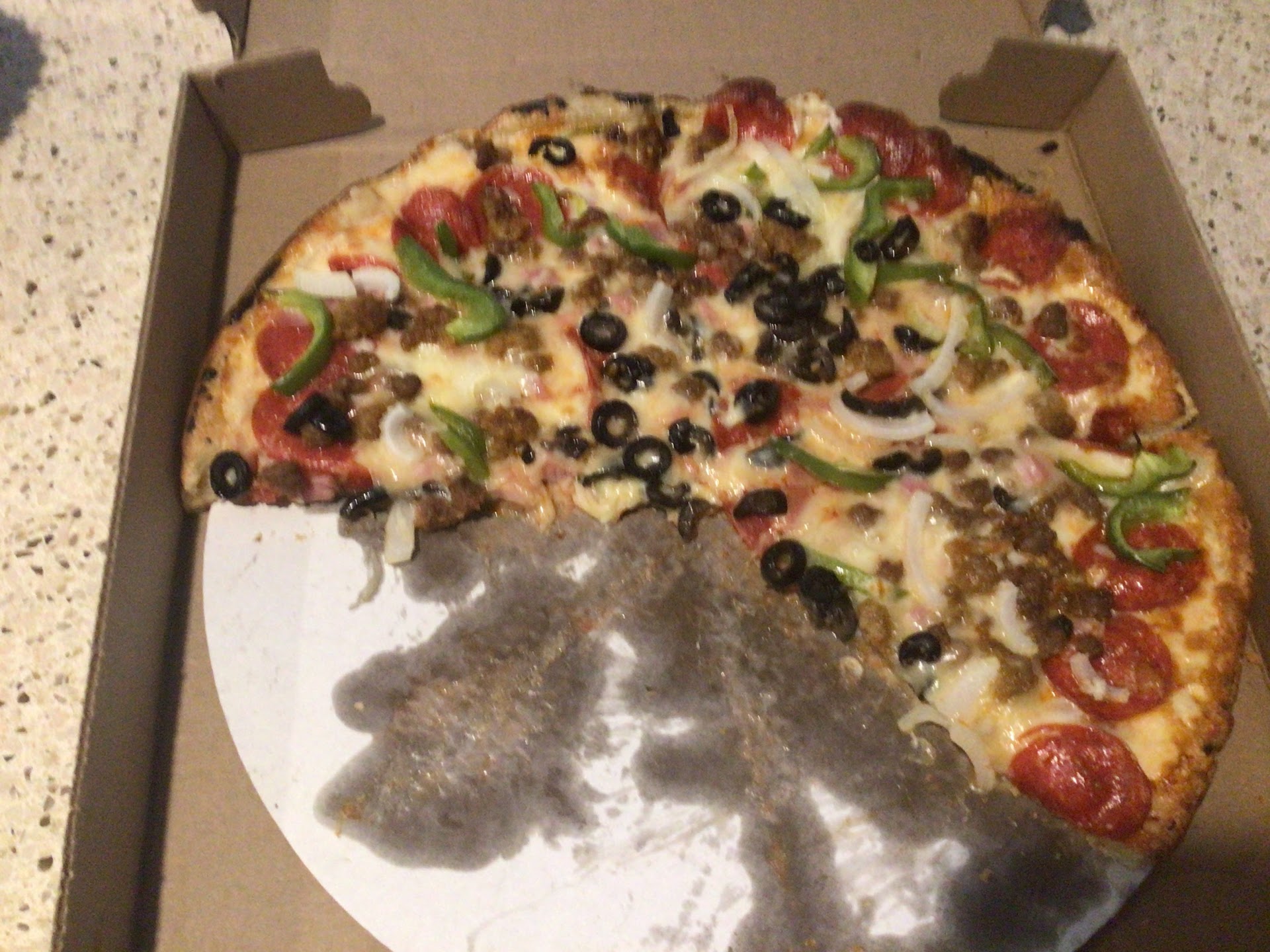 I love this place! I get dinner here at least once a month and my daughter and I always look forward to it. We love the food and every time we go to pick it up everyone who works there is so nice and welcoming to us. They always joke with my 3 year old and she even draws pictures for them. It’s really nice to have that feeling when we walk in there, that local regular pizza place that knows you and your family and is happy to see you. If I can recommend anything it’s the super quesadilla, but everything is great. The owner and his family and everyone who works there is the...