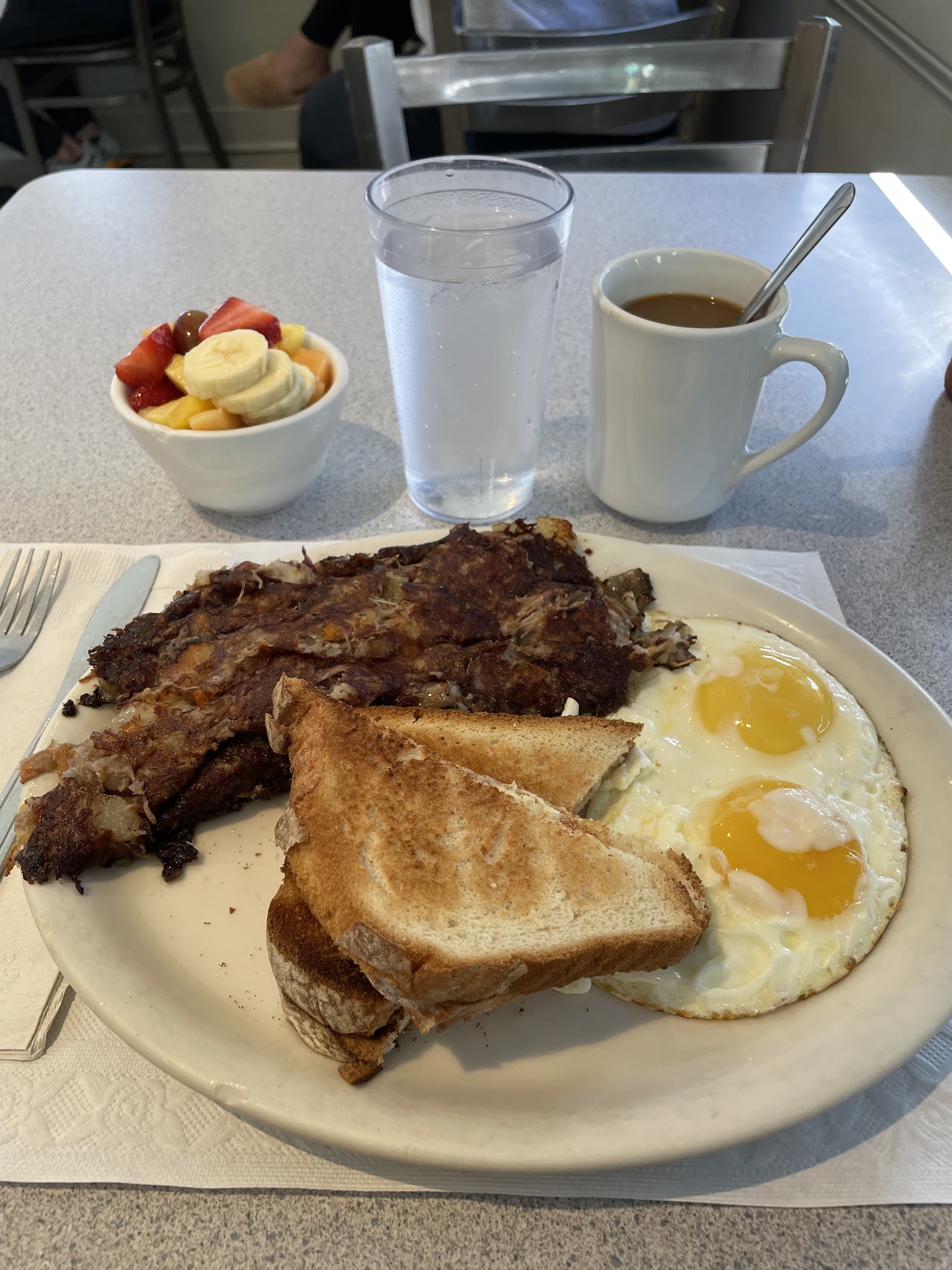 Read moreThe staff is amazing. We were a large party with an electric wheelchair--not easily maneuvered. They sat us promptly, even asked other patrons to please get up so the chair could get by. I'm especially thankful for that because it meant that my friends didn't have to inconvenience the other patrons, our hostess did that for us. They really made us feel comfortable. Our food was served very quickly and was prepared very well. No one ordered the same thing and everything was great. The coffee kept coming too. There were in addition to the menu items, at least 5 or more specials on the wall to choose from. They are a cash only restaurant, but there's an ATM across the street if you need it. I would definitely recommend this restaurant.