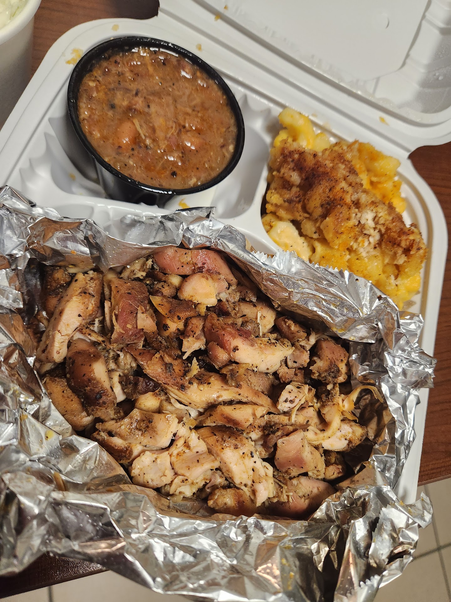 Read moreOne of Very Very Few BBQ Joints Around and for How Well Seasoned the Chicken Was It Should Be Appreciated Which It Seemed to be By the Number of People That Were Coming and Going for the Time I Was There... Again the Chicken Very Well Seasoned and Really Doesnt Need Any Sauce... Props to the Cranberry BBQ Sauce That Was Great to Add to the Mac N Cheese... The Mac n Cheese Was Decent... They Should Come Up With a Signature MAc N Cheese to Represent Them More Since the Menu Is Limited Only Also Offering Corn Bread,, Roasted Corn,, Coleslaw and Baked Beans... Cole Slaw Was Average But Would of Went Nice With Some Baked Beans IF They Offered Some WithOut Pork Since I Dont Eat Pork... Scoop the Corn with the Juice at the Bottom Since Alot of the Seasoning Sinks to the Juice... This Is a Great BBQ Food Truck to Check Out With Prices to Respect for the Area... Service is Fast and Dont Forget the Cranberry BBQ Sauce... Maybe a...