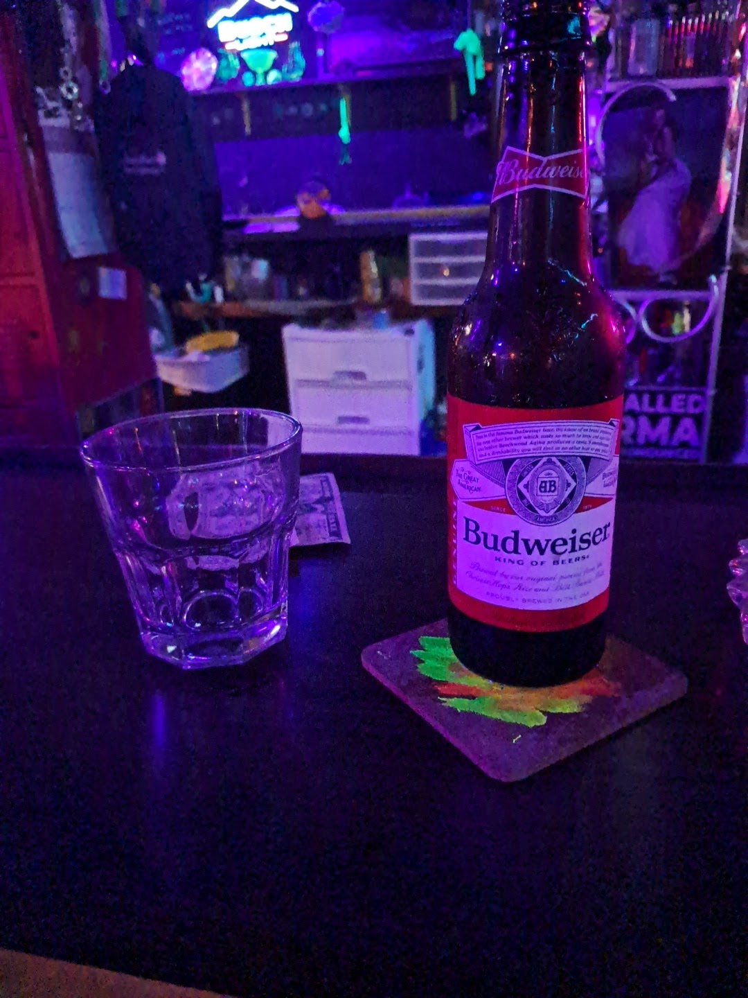 Read moreGreat bar!!! Bartender was super cool and pretty! Friendly to the point I felt like a regular. I haven't been to a bar in years and it was a nice to feel the bar vibe again. Double shot of Crown chilled and a Budwiser bottle started me off. It is karaoke night obviously and the old timers got the mic! 60's classic country and m9dern country, they did good too. Fun place. Recommend this...
