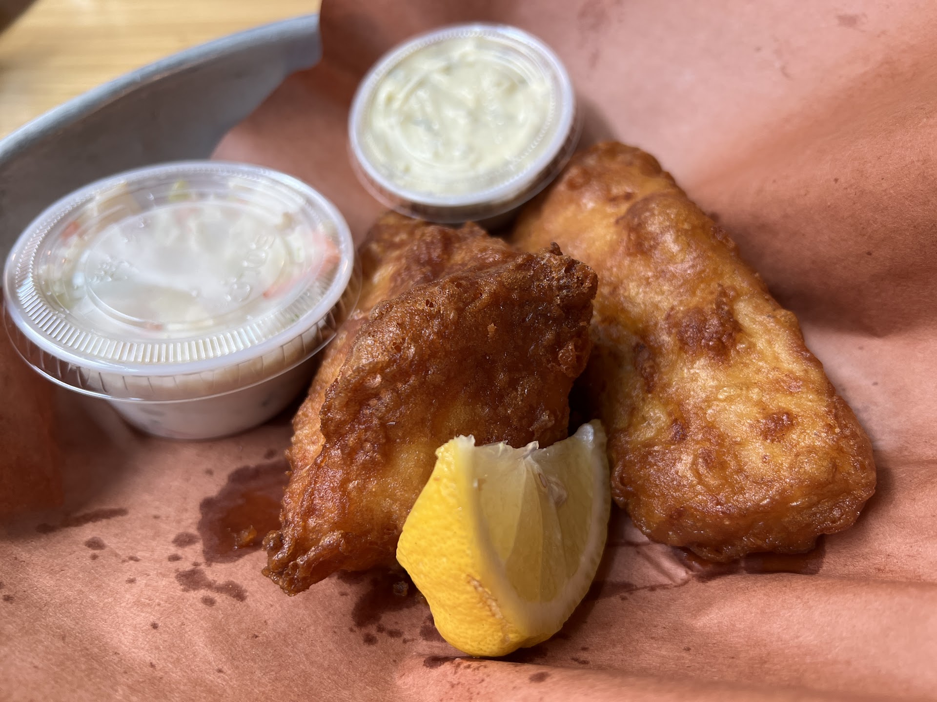 The food is amazing, I had a combo of #3 fish and chips, I upgraded to lobster bisque of $2 extra to replace the chips, it’s $2 worth spending. The lobster bisque is very flavorful and you can taste bites of little lobsters inside. The size of both of my fish are pretty generous. The fish is flaky and fresh, outside is crunchy, one of the best fish and chips I had ever had. I had the combo so got to try both cod and halibut. But I wish they have combo of all three fishes