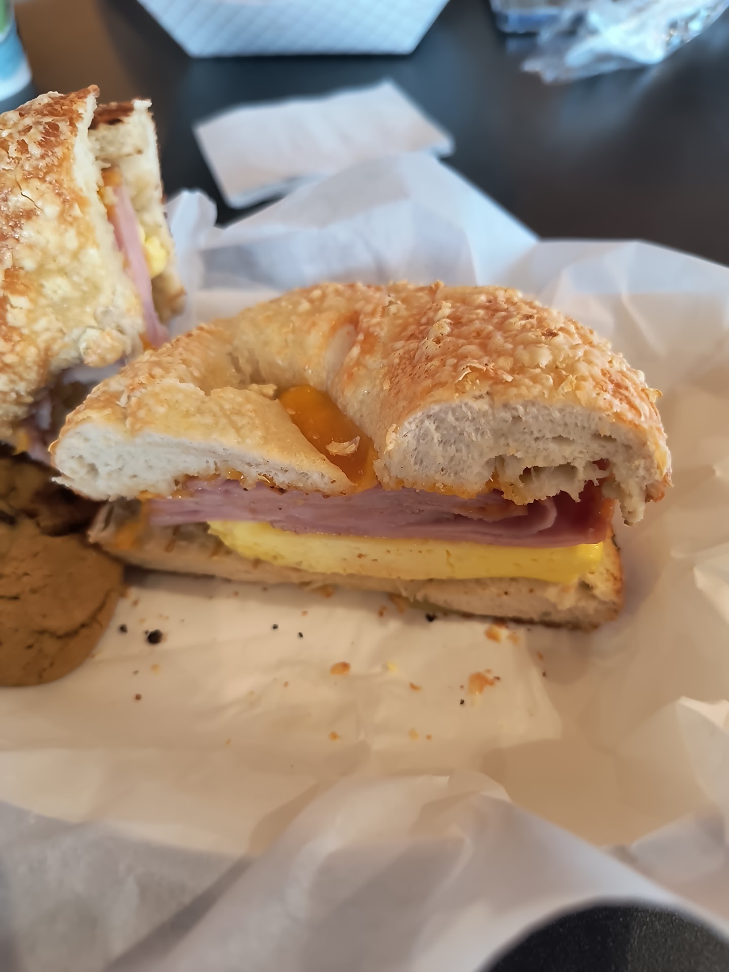 The bagels were chewy and delicious. The breakfast sandwiches were very tasty. We tried several flavored cream cheeses they're all spectacular.