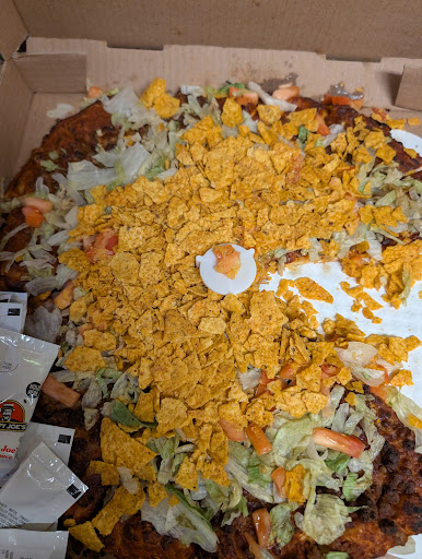 i really hate the "mexican sauce" that comes on the taco pizza though, other people i have talked to about it do not remember that on the original taco pizza and its just unpleasant and too much bean flavor/paste. i always order no tomato, first pizza without sauce had no tomato. i even mentioned being allergic to tomatoes, and my 2nd pizza after an hour and 15min, had tomatoes. when i picked them off, i ended up with over 50 pieces zero exaggeration it felt like a tomato sabotage.. felt super uncomfortable like it was intentional because of the sheer amount of tomato vs other toppings. said ok ill just pick them off and quickly left. dont feel good of course.