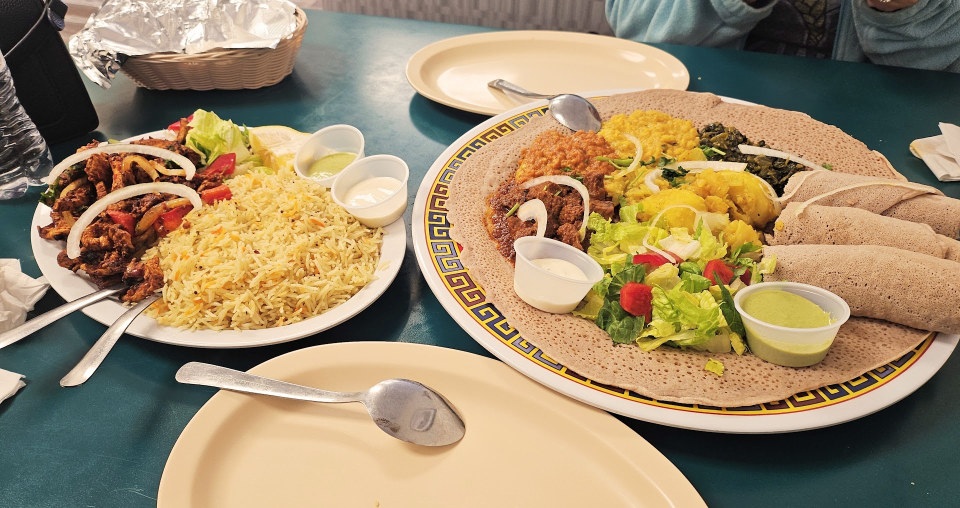 I'm overjoyed that Madina is back and her delicious cuisine! She's friendly and gave me a hug on my first visit to the new restaurant. The chicken is so delicious along with the most perfectly cooked rice. The rice knocks it out of the park!! The sambusa are a delicacy here. We ordered both chicken and beef sambusas. They're spicy and even better with the spicy green sauce. We also shared the everything injera platter. It's a feast and could be multiple meals or shared amongst a few people. It is certainly a great way to try multiple dishes at once. There's 2 lentil stews, potatoes and cabbage stew, stewed collard greens, salad and the best beef stew served with injera. Injera is a fermented flat bread that pairs perfectly with the stews. Check out Hooyo for good East African cuisine!...