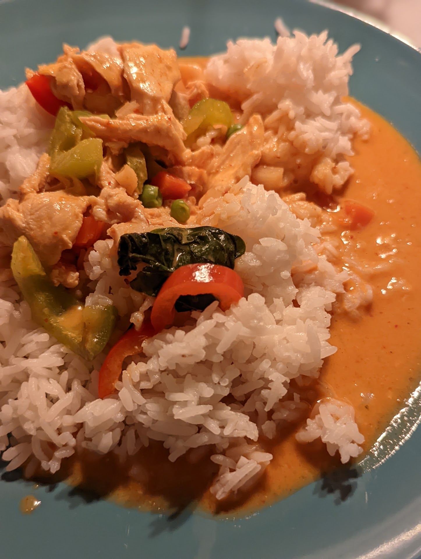 I order LEVEL 5 spice, which is just under maximum “Thai” spice level, for both my dishes. Wife orders a cocktail with her meal. Food comes out about 30minutes later so now we’ve already been here for nearly an hour.