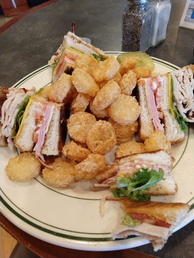This place is crazy-town. You can't bring kids into the "bar/lounge" area because alcohol is served there. You can't bring alcohol out of the bar/lounge area because of a city ordinance. So, if travelling with children, the waitress recommended having our kids sit at a table on the other side of a half wall so they were outside of the lounge, and we could sit in the lounge on the direct opposite side of the wall to the kids. This is not the fault of the waiting staff, but rather a situation caused by local government absurdity. But the outcome is the same. The food is just being reheated from a freezer, the service is slow, the coffee was weak... If this wasn't the only place with beer and a full bar, this place would be out of business. You go here because you literally have no...