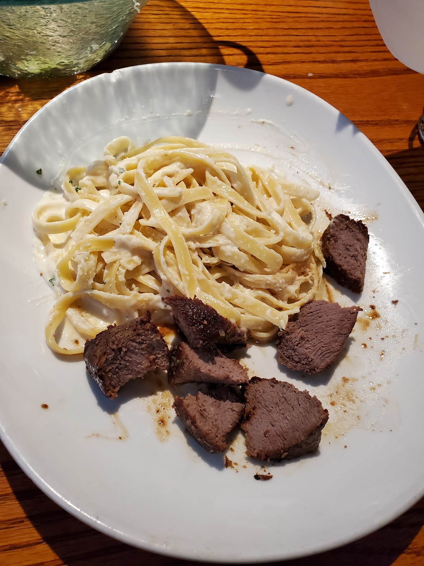 So I tried again and ordered the Herb Grilled Salmon. Normally I don't like salmon but this was alright. I've had Sea Bass and other types of fish but won't be eating salmon again. The seasoning was good but the broccoli was disappointing. 2 failed dishes in a row discouraged my night out. Never bringing anyone here, including my son, the food is disappointing. I'd rather eat at dennys or frying pan at this point. I could tell the waitress was ashamed of the food and service by her body language and lack of eye contact. She must have known something by that point. $60 wasted. Last bad sign.