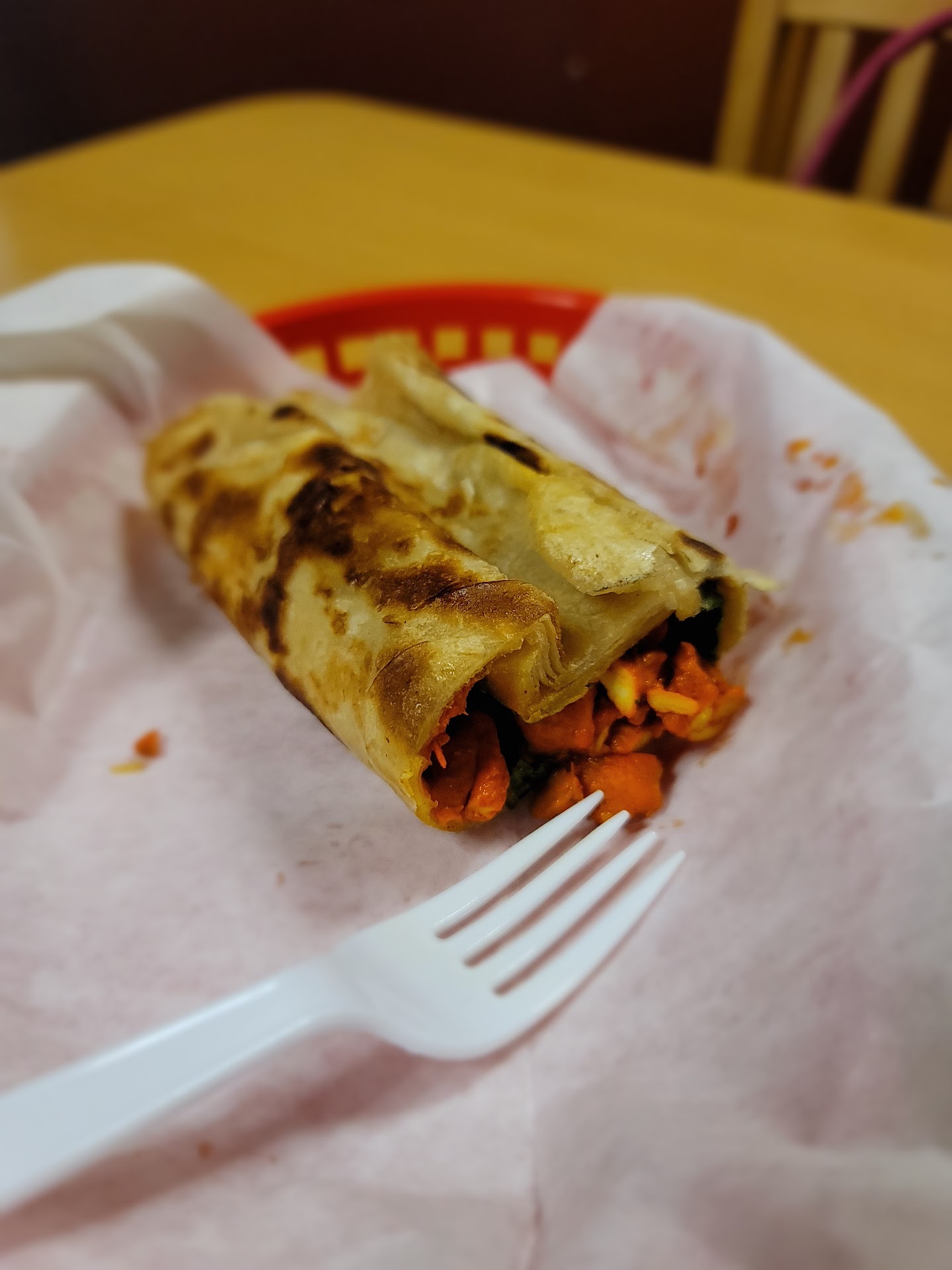 Read moreBought a coupon on Save Coin and wasn't sure what to expect, as we hadn't eaten East African food before. I ordered the jabati chicken wrap and enjoyed it - good flavor and tender chicken and wrap. It came warm with 2 pieces and wrapped in aluminum foil, but only 1 piece is shown in my picture. The wrap material ('tortilla') was tender and a little sweet...reminding me a little of a crepe.