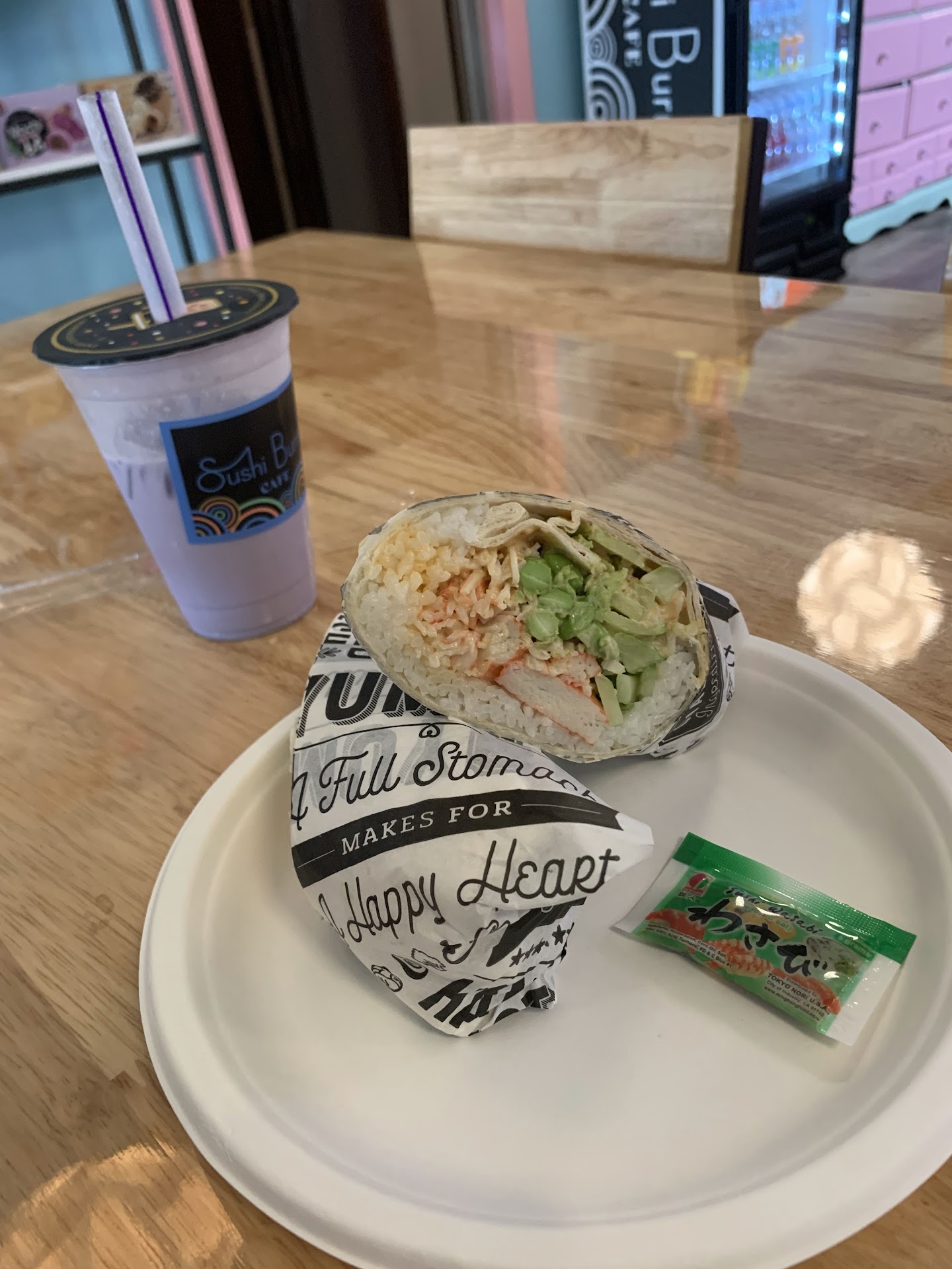 We also got boba, because of course a sushi burrito joint would serve bubble tea too! I really enjoyed that- but the boba was a tad too soft, it was almost just melt in your mouth, and anyone who’s had boba a lot knows it should be more chewy and a bit solid. It’s a delicate balance. But overall I’d definitely come back and 100% enjoy it! Just maybe getting something slightly...