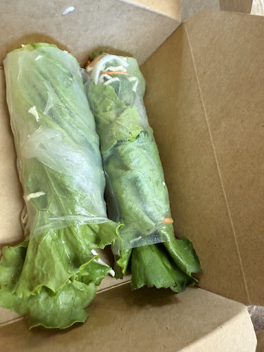 The spring rolls were first; delightfully surprised that the $6 order came with 4, north standard two. They’re admittedly smaller than most, and without addition of vermicelli, but they’re packed with fresh veg and a modest amount of protein. Bonus: two different dipping sauces included. Next came our entrees. Generous portions are an understatement. My Labb Moo was on point. It’s a spiced ground pork alongside fresh lettuce, cucumber, carrot, cabbage. Sticky rice is provided separately in a bag. I’m not sure the traditional way to eat it, but the rice is so hot. I like to dump a little bit into the bowl and grab a little of each component in a bite.