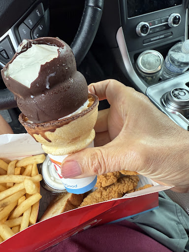 Read moreFairly quick stop driving back from Mankato area to the Twin Cities. Long light to cross over the intersection. Drive-through seemed like a long wait so went inside to place orders. We ordered chicken strips but order came as a basket (surprised because thought I only ordered chicken strips. should have been obvious with price I paid). Thought it was strange when asked what beverage was wanted but asked if I could have water. Kind of a slap in the face when given water cups instead of a regular size cup if that’s what comes with order. Our cones must have been made ahead of time because we found them melting on the counter. Our order number was called but since we chose to save the environment and chose not to have a receipt printed, we had no idea what our order number might be. Things were a...