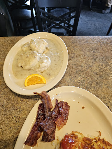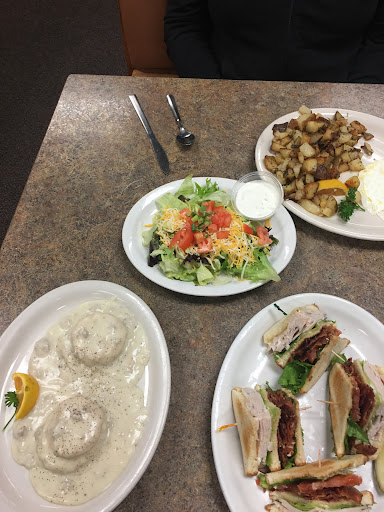 So disappointed. Over-priced generic food. I was so excited to eat here. The person who reccomended it to me raved about it. Let's start from the beginning. First we get there and there's signs pointing you away from the front door to a back door to enter. We go around to this door and go in and some crabby waitress greets us by telling us to go to the front (where the door we were originally going to go in was) and someone would seat us. We get seated and order coffee. It costs $2.50 and is mostly water. I could've got a better cup of coffee from a gas station for 1/3 the price. I got the menu and was expecting some good deals since I'm in a small town diner, but everything seemed to cost the same as perkins... some things were even priced higher than Perkins. So then I was thinking "oh well I bet portion sizes are bigger with fresh food vs. Sysco". Wrong again. I got 2 scrambled eggs, hashbrowns and 2 pancakes for 9 dollars. My eggs were just ok. Hashbrowns again were just ok, but the waitress forgot to bring the ketchup we asked for and by the time she got it for us they were cold. But the pancakes were the real disappointment. First they were only slightly bigger than silver dollar pancakes, second there's no way you can convince me they weren't made with bisquick or some sort of mix(i use mixes myself, but my pancakes don't taste like cardboard the way these did). So I am very sorry to say I couldve gotten better tasting food and more of it for the same price if I went a few blocks in a different direction towards perkins! I don't even really like perkins... I'm just using them as an example because most people know what perkins is. Anyhow, so much for being in luck and having a delicious diner up the street...
