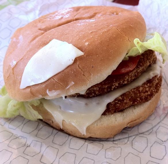 Read moreThe Really Big Chicken Sandwich: 2 out of 5 burps: While you can't really call the chicken in the Really Big Chicken Sandwich "chicken" I will say that it is rather big as these things go. It has lettuce and tomato, which I told them to leave the tomato off but as normal was left on. (Man I need to figure out how to say no in Spanish!) There's bacon and that's always a plus. Then as you would hope, two "chicken" patties with cheese on each one. Mine as you can see was built with enough love and caring to include part of the cheese on the bun. I guess think of it as food porn! While you've got cheese where it normally belongs, you also have that one dude that likes to put cheese on the face...and stomach or the belly, pretty much wherever they want depending on the kind of videos you enjoy watching when you're alone. I'm not going to judge you're tastes! I will judge Jack's tastes and I have to say that just as with some of those videos that I've seen, I always feel shame and sadness that I clicked on the link. I left Jack in the Box as I imagine all those young Internet ladies leave those studios. Gone to Hollywood to make it big time only to end up high on blow, sitting (sometimes bending) over a plastic wrapped couch with a HD handy cam purchased from Best Buy shoved in their faces. "Tell the home viewer how much you like it!" the guy yells. Well I'll tell you how much I enjoyed this and that my good Jack was not very much! I'll take some of those handy wipes now please. Oh, and you're not going to put this on the...