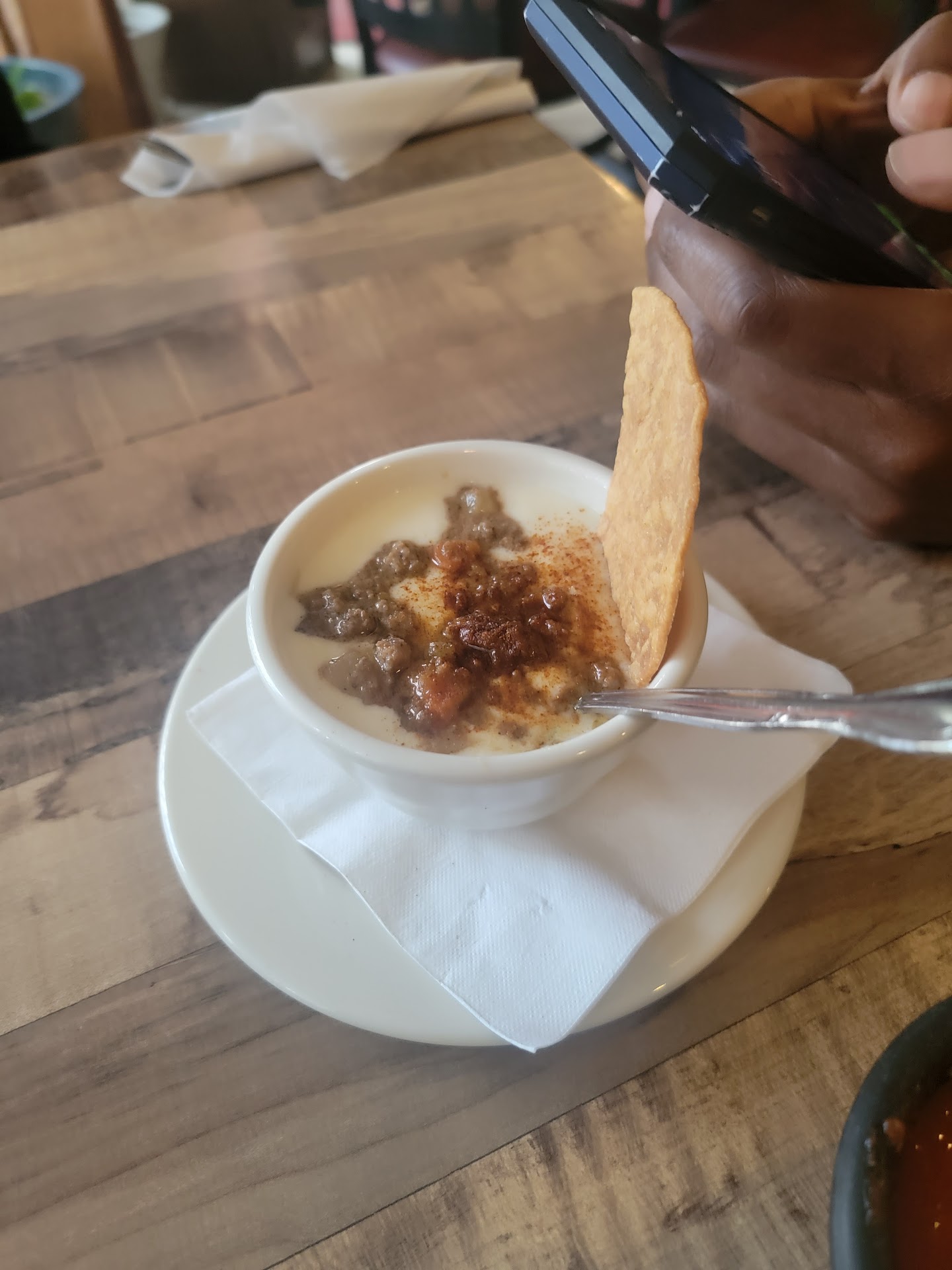Growing up in San Antonio, I judge Mex restaurants by their enchiladas and the chips & salsa. Nuevo León’s cheese enchiladas with Pasilla sauce is outstanding. I requesting a sprinkling of beef fajita and was surprised by the generous amount served. Hard to stop grazing on the chips & 3 different salsas. The verde was my favorite. Boyfriend loved the charred. Boyfriend had skirt steak with chimichurri. The red chimichurri was unique and addicting. The steak perfectly cooked.