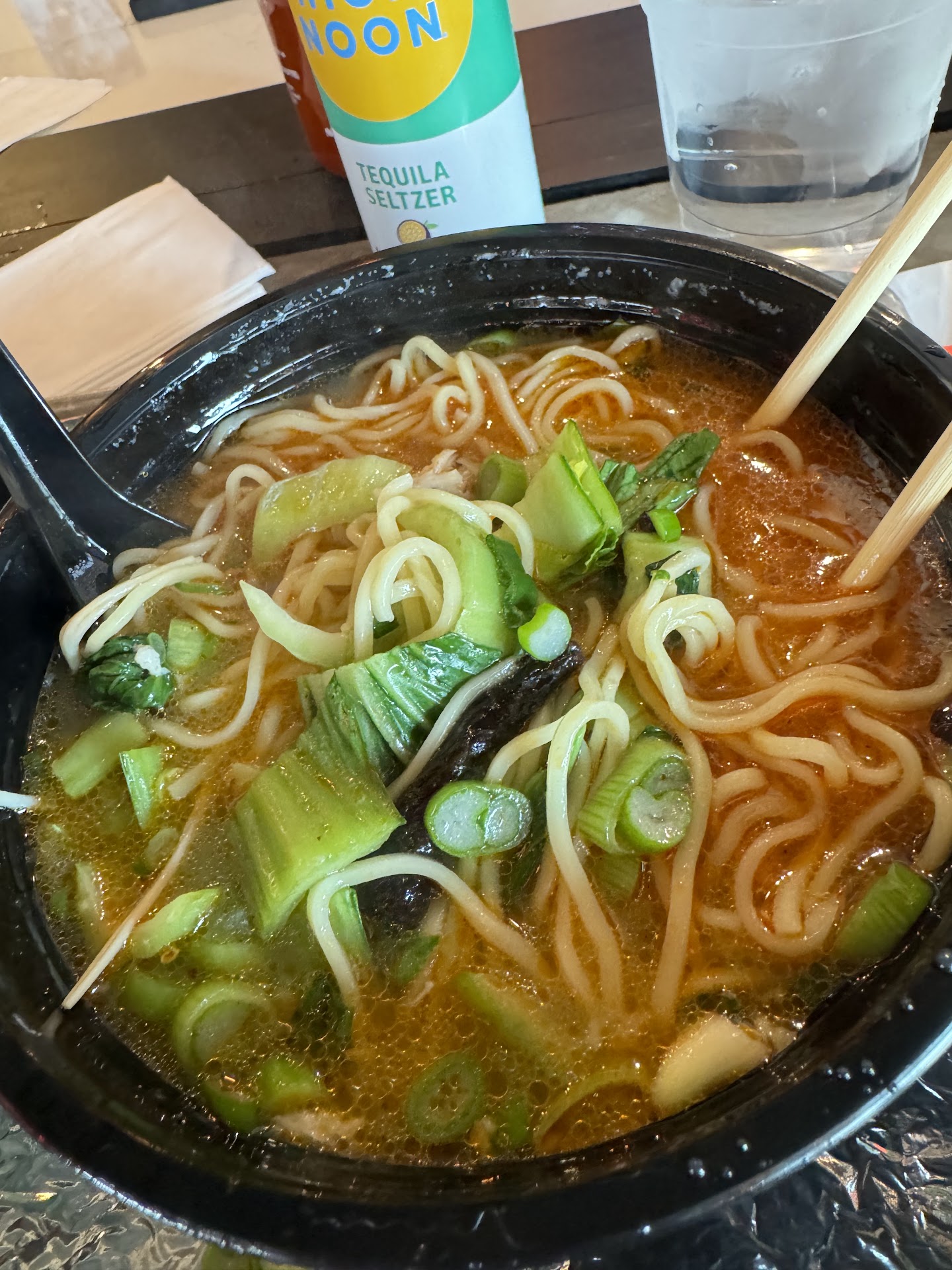 For food we got: fried chicken dumplings - good! spicy edamame - one of our faves togarashi fries - not too unique shrimp Rangoon - BEST I’ve had crispy wrapped shrimp - too crispy in my opinion sriracha buffalo wings - good! ramen - good but a lot of bok Choy Tom khai gah soup - also good drunken noodles - the favorite dynamite shrimp - not my fave