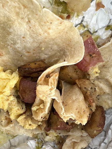 The “steak” or "fajita" is a crime scene on a tortilla. Tougher than shoe leather, never fully cooked and somehow still flavorless. You don’t chew it you fight with it. Honestly you could probably patch a tire with it. After giving up, I had to pick out the pathetic scraps of “meat” (if you can call it that) and was left with nothing but an overpriced veggie wrap.