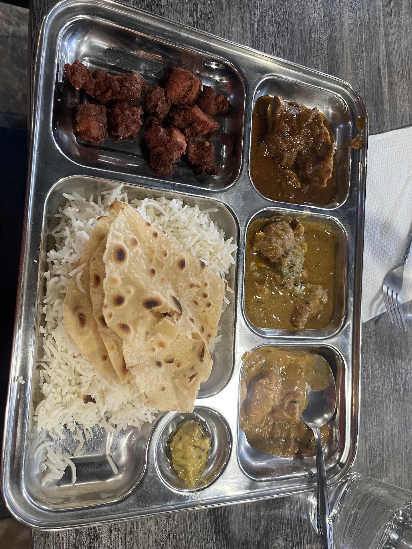 FOOD QUALITY👍: We tried the lunch thali on a Thursday, and while the food was okay, it didn’t stand out. The thali seemed to be prepared in bulk, which may have affected the freshness. The Pappad was not fresh, the Chapati was decent, and the Goat Curry lacked flavor. The Butter Chicken was satisfactory but didn’t leave a lasting impression.