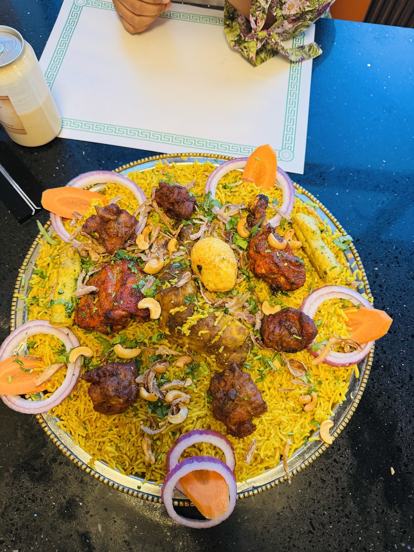 The menu primarily focuses on curries, bread, and biryanis, delivering bold flavors. Complementary soup though salty but it was good start. Chicken RRR appetizer is flavorful. The Mutton Mandi Biryani is the highlight, packed with delicious spices, tender mutton leg and perfect for sharingâtwo platter-sized portions can easily feed three people. Mutton chop was dry and salty. For a lighter, subtler option, the Pottalam Chicken Biryani is a great choice. Kurma on the side tastes great but was cold. The food serving dishes enhance the cultural dining experience. Look for specials over the weekends, as they may offer unique dishes.