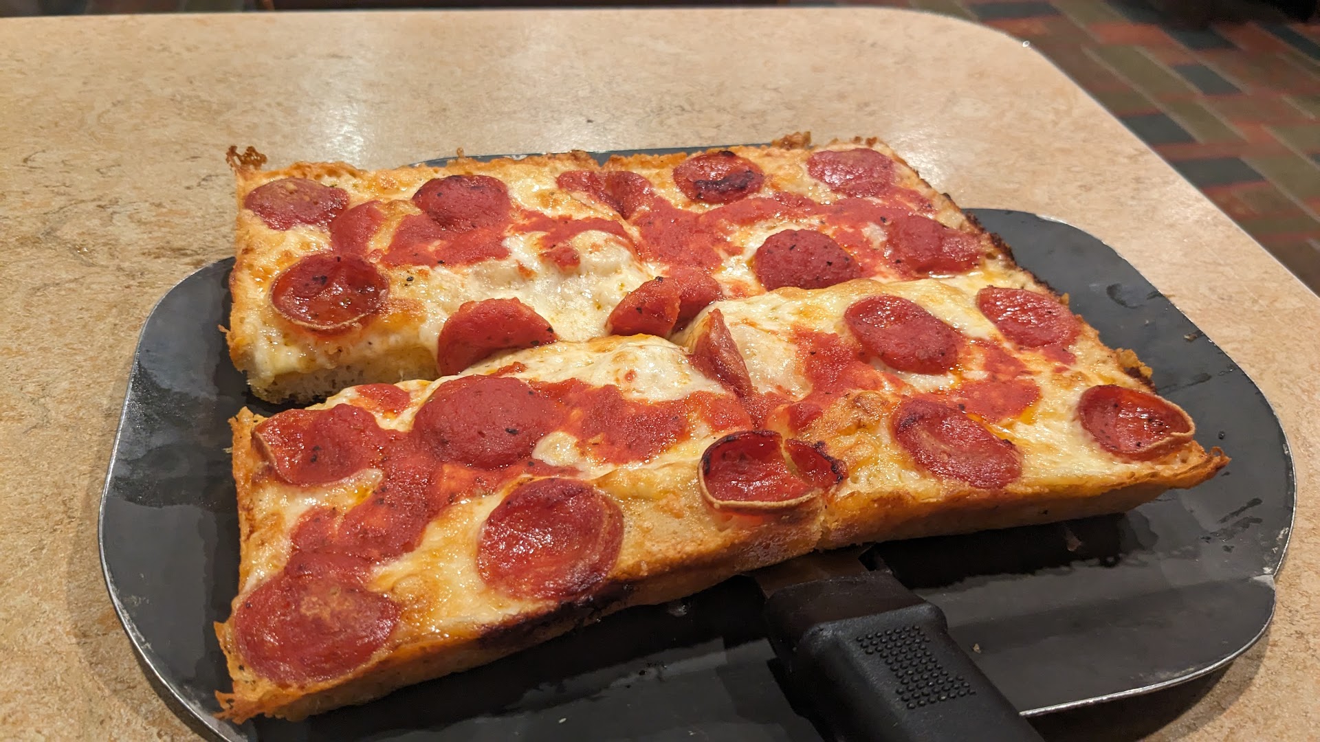 Read moreI stopped for dinner and was quickly seated. This is a large place that is very well kept, and clean. My very friendly server came right over and gave me a menu and took my drink order. I ordered the original Detroit Style Pizza with old world pepperoni and brick cheese.