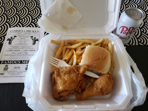 RUN AWAY FROM THIS PLACE AS FAST AS YOU CAN DO NOT EAT HERE! If I could give this place zero stars I would. We order their 21pc. Boasted chicken dinner with colesaw and mashed potatoes as well as a whole slab of ribs dinner. While ordering over the phone the man we spoke to started having a conversation mid order and then got mad when we repeated our order. Upon arriving the place is dirty and in disarray.This shouldn't have been a red flag but we went home with our food anyway. When we started eating was really the kicker. The chicken was extremely dry that you couldn't take one bite without choking. The coleslaw and mashed potatoes we're sour in taste. The whole slab of ribs came with 1 piece of garlic bread a small side of coleslaw not enough for a whole family meal. The potatoe wedges were also very small and dry. When we called to speak to then about bring it back for a refund the man on the phone argued with us and said everything was fresh and there was no way there was a problem. He also told me he pressure cooked the chicken for 45 minutes, im pretty sure that's not a method of boasting chicken. He also kept claiming they've been around for 32 years there's not way the food was not good. When bring the food back they tried to fight returning our money. We brought everything that hadn't Bottom been bit into and they tried to claim they can't gieb us a full refund. We stud there arguing for 10 minutes as he kept telling us all the famous people from California who have eaten his food and all the regular customers he has. Also kept saying "your a first time customer there's no way our food is bad.. BOTTOM LINE DO...