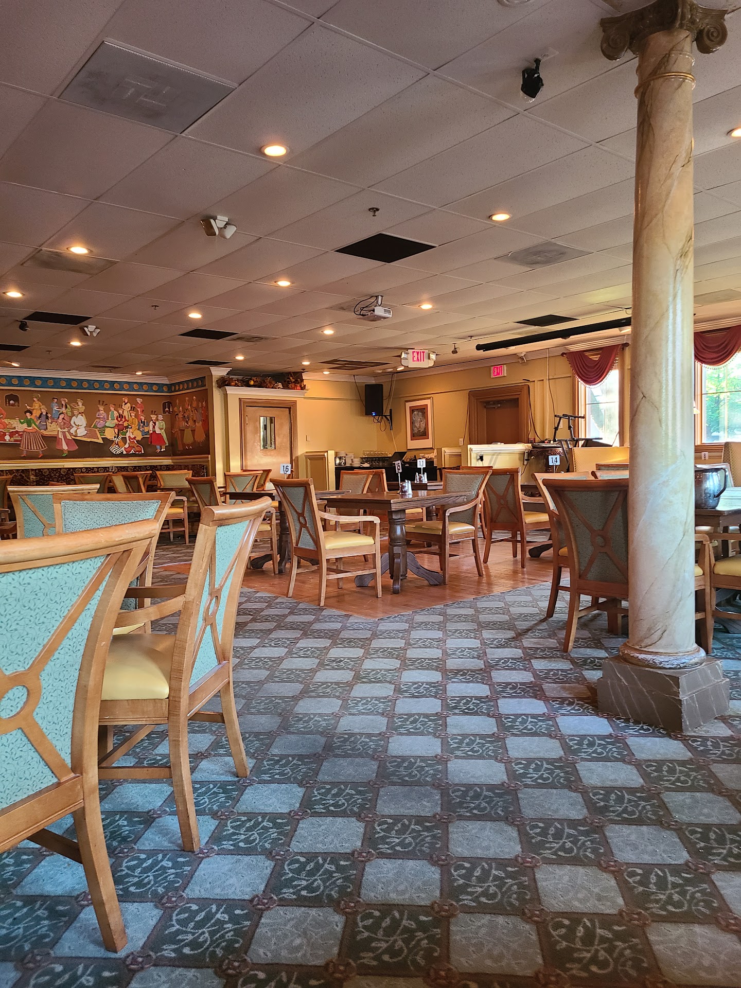 The design there seems like an old mom and pop shop with old carpet floors and ceiling tops that have stains. The art on some of their walls may show some culture, but everything needs to be renovated. The service also needs to be improved as the tables there do not show âelegance or luxuryâ. They use disposable paper rather than a table cloth. They do offer barcode scanned menus, but physical menus are also appreciated. They sometimes lack enough staff and also have a shortage of menu items.