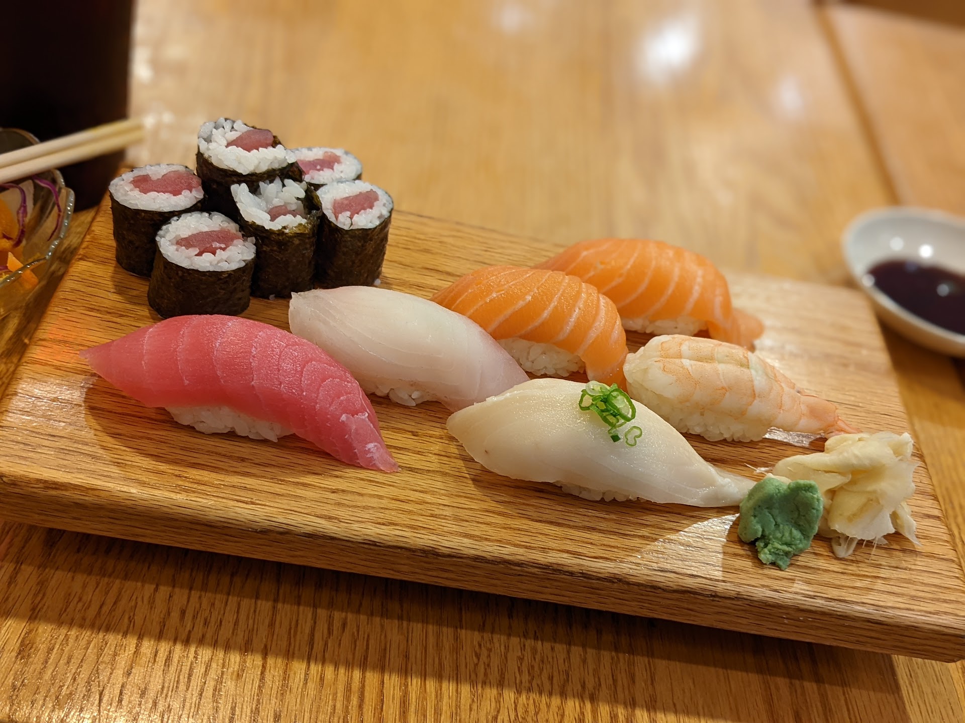 The sushi stole a star (almost two) from the rating. I had salmon, mackerel, and scallop nigiri. Here's what was off about each one: