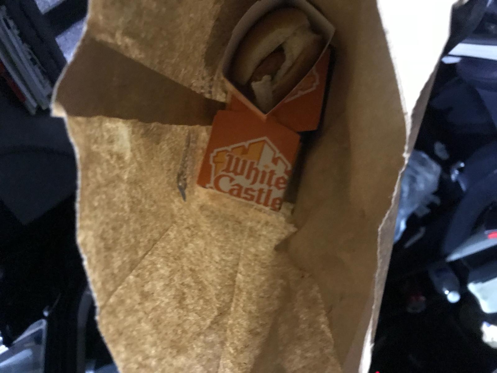 It's a White Castle. My friend ordered on his phone on the way there, we got there and it wasn't ready on time, par for the course. Being White Castle, though, the little burgers were good as were the onion chips.