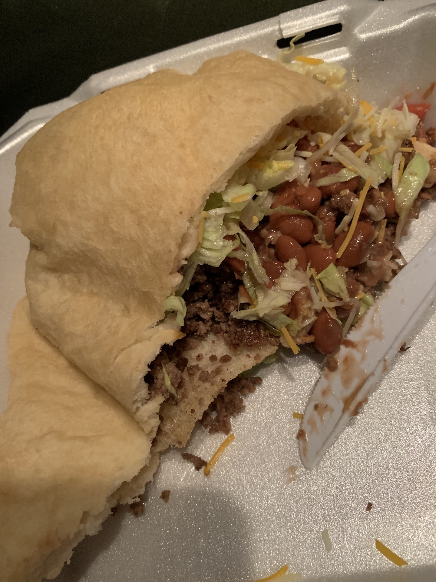 12/4/2023 So toda6bi decided to try the Navajo burger, and wow, did it look and taste horrible. Just have a look at my picture of it. There was so much grease on the frybread. So one definitely needs to show whoever made that frybread how to make a good Frybread. The meat tasted plain, no salt, nor flavor. This burger had no lettuce, and tomatoes were too thin. What was funny was I only got two little round slices of pickles.