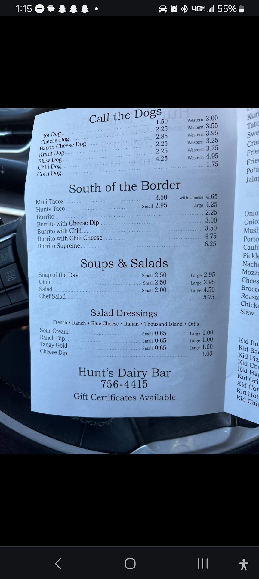 Read moreFirst let me say we love hunts food and we always try to support local. We take walks pretty much everyday (me and 4 small children) we stop usually every other day and get burgers, tacos, fries, ice cream, and sodas. It is so refreshing to be able to walk/roller blade with my children to the skate park. And stop at a local burger joint! Fond memories have been made thus far. Anyway we stopped today and approached a woman with reddish hair and asked if we could have 4 small cups of water and she said not for free. I'm sorry, but we always stop get water while we look for what we want. Then she proceeded to talk about me as we walked away because I will absolutely not going to be talked to or treated that way! Customer service is something that makes or breaks it for me! Unfortunately since moving to Farmington there are a few places we won't go to anymore because of the customer service. The ice cream man is another one we will not support. If we do decide to ever eat or get ice cream again from hunts I will refuse service from her! Very...