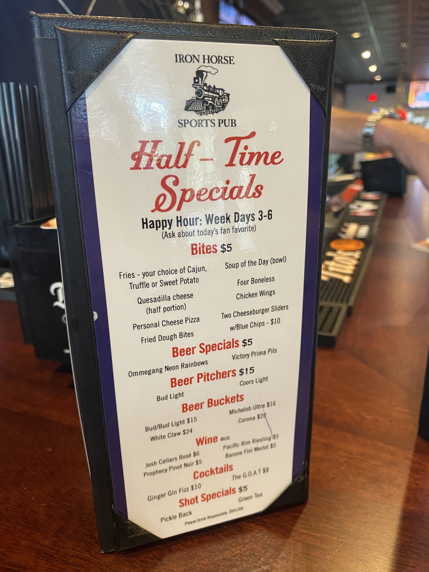 Read moreSo, my manager at William Raveis Avon office announced we were having our annual Damon Runyon Research for Cancer fundraiser at a bar in Unionville. I immediately said if its at the same bar we went to last year...forget it. She replied "no no no it's at Iron Horse Sports Pub".... located in the plaza behind McDonalds. Let's just say.... I came home and told hubby all about hit. If you want better than average food with good size portions, generous pours on the adult beverages, fantastic TV's. This is the place. Love the giant bar. The only place that I know of now that has a giant bar is Carbones in Bloomfield and The Talcott Mountain Collective in Simsbury which that bar length sets the record.. We ordered to share the brussels sprouts, nachos and calamari. I wanted my own bowl of everything. We packed the house and we didn't have to wait at all. The Trivia was very well run. Our trivia team name: "the naughty nurses" . We have a patent on that name. The MC (who was a hoot) did not need a microphone and their music selection was tops. Want a group party or just a night out....this is the...