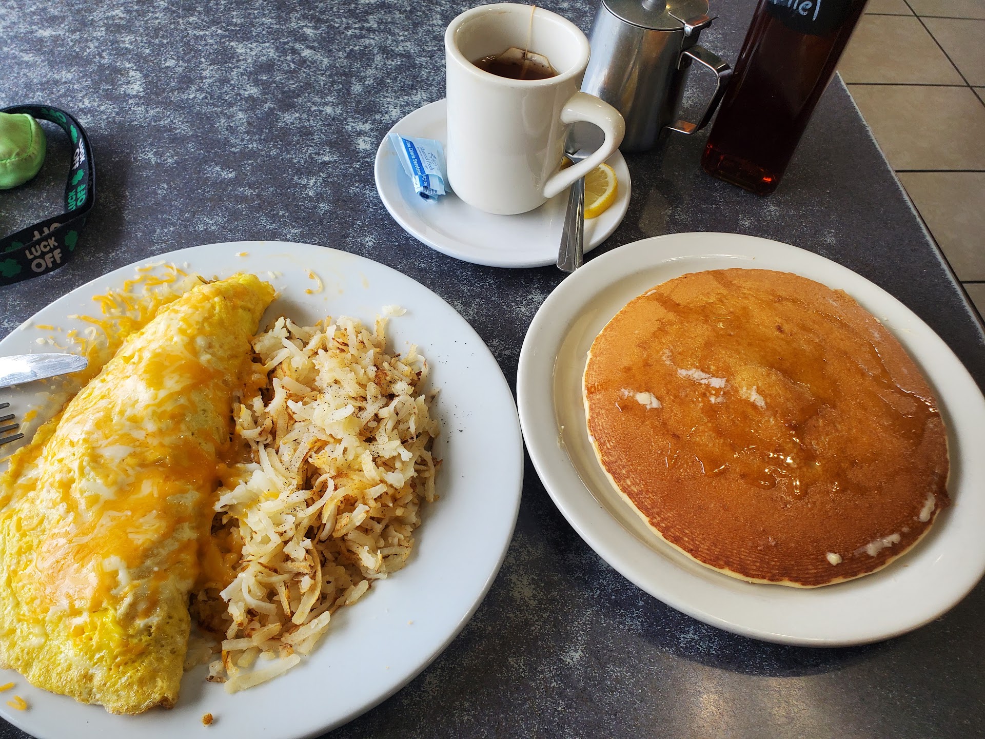 The waitress was plesant, greeted us right away and let us know we could sit wherever we wanted. She took our drinks right away and brought them back. We were ready to order. Fresh squeezed OJ, in a tall glass. Coffee was great. We had brunch. Hubby ordered adobada skillet, was out of this world good. We asked for some salsa after a while. Waitress brought it right out. I ordered traditional American breakfast and bacon was yummy, hash browns were great! Eggs were missing cheese but I tried them and they were off for some reason had a weird after taste. I didnt finish them just had a couple bites. The biscuits were so hard I couldn't eat them. The gravy was very tasty.