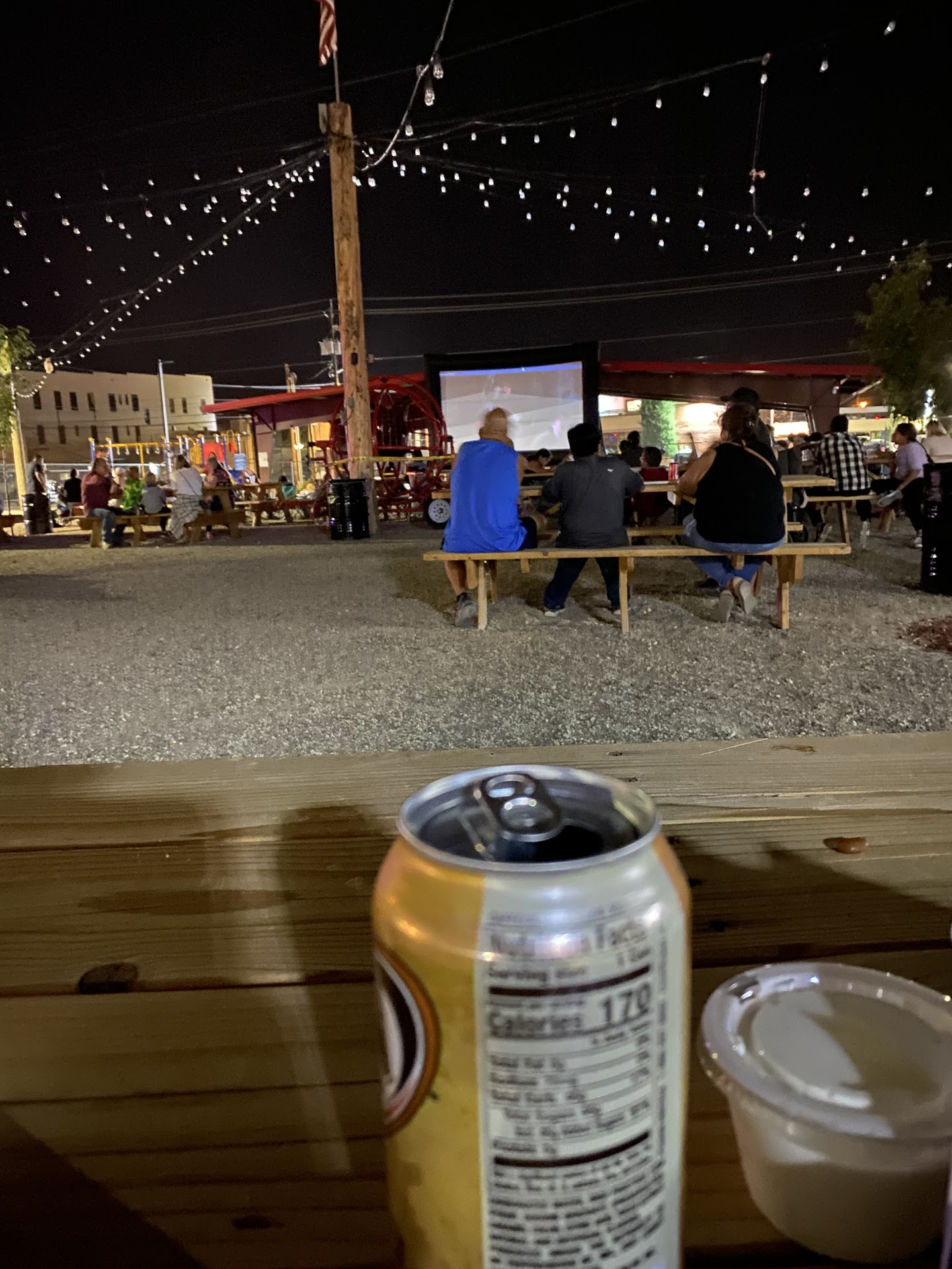 Was having a great time until we were told we had to move for the movie. We had chosen a table near playground because our son was playing there. After maybe 20 minutes or so was told they needed to move the table even though it wouldn't have been in the way of the inflatable screen. I'm sorry, but I refuse to be in a place where I can't monitor my child. Additionally, as the other children were not being watched by their parents, some were out of control. In no way do I place blame on Locke St. Eats for other people's behavior, but all other parents were across the facility and not watching their children. One repeatedly threw handfuls of sand into my child's face and another threw a handful of sand into my food. If their parents had been around, maybe this wouldn't have happened.