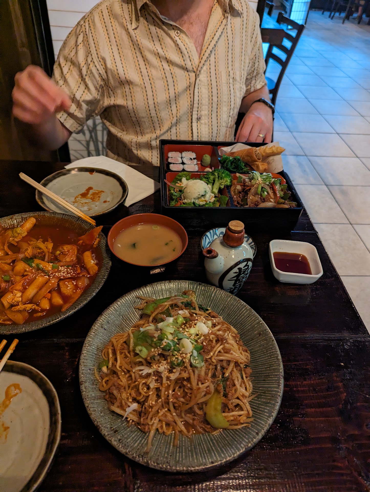 My wife order Ramen (I dont particulate love ramen), but she love it, I went with the traditional bulgogi spicy pork over rice and was a blast!, my first place on this dish was closed unfortunately, so, this nowadays become my no #1 dish, portion, flavor, temperature, everything was perfect.