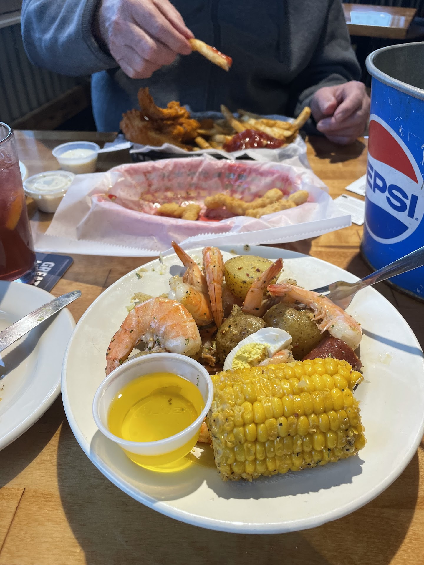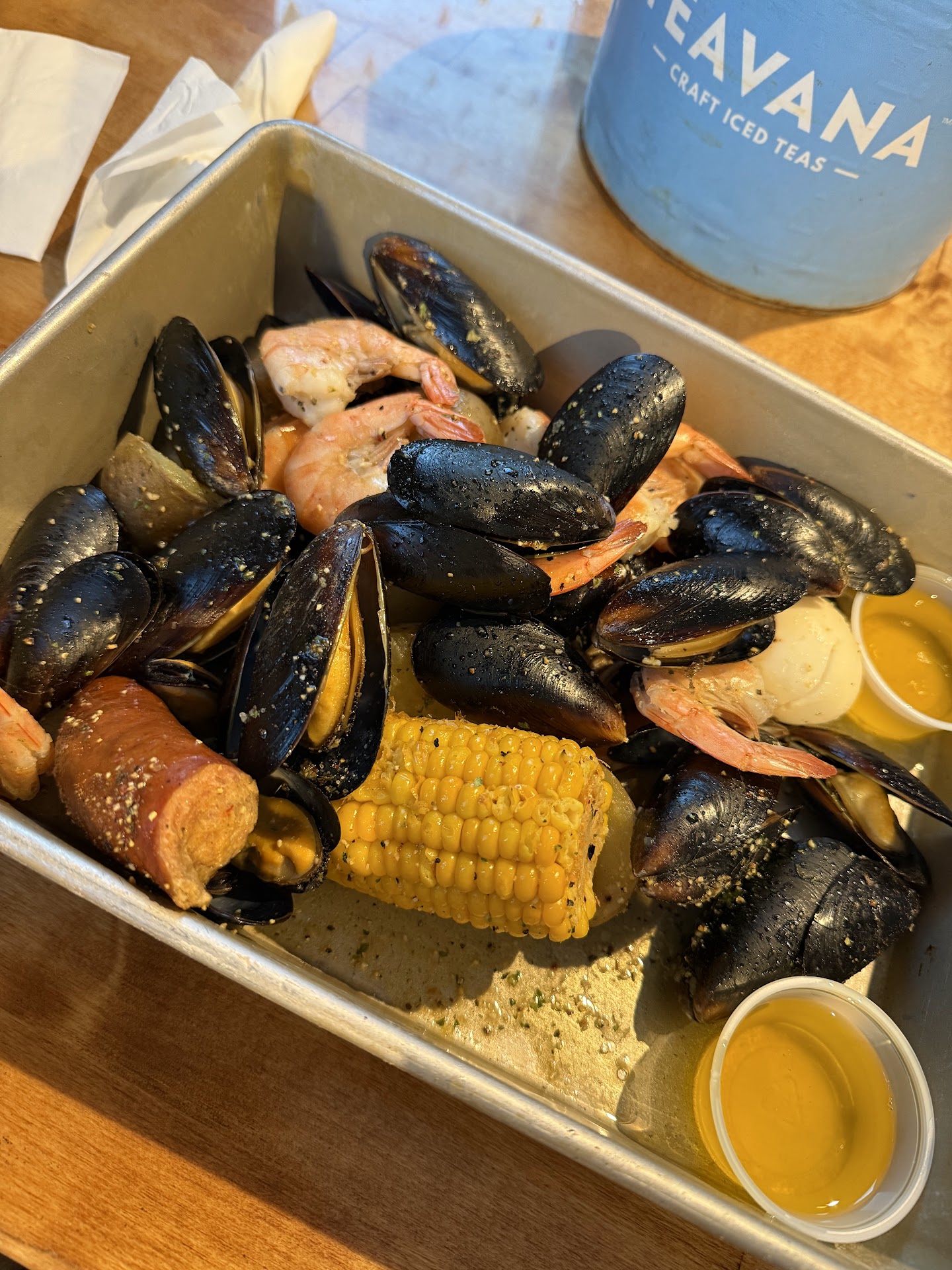 Disappointing. Expensive. Food quality was disappointing. The salad was the cheap salad with purple cabbage. The price for salad youd expect way better quality. The crab legs were cold and no flavor. The salad kept falling off the very SMALL plate a thousand times making it difficult to eat or stir in dressing. Expect a cold and dry sea food boil with little seasonig. No sauce. Any Seasoning you may wonder? Yeah maybe sprinkled on their, like theyre trying to save money. Very disappointing. A good environment, but too quiet no music, everybody was whispering because everyone could hear everyone's conversations. The price did not meet the quality. Will not...