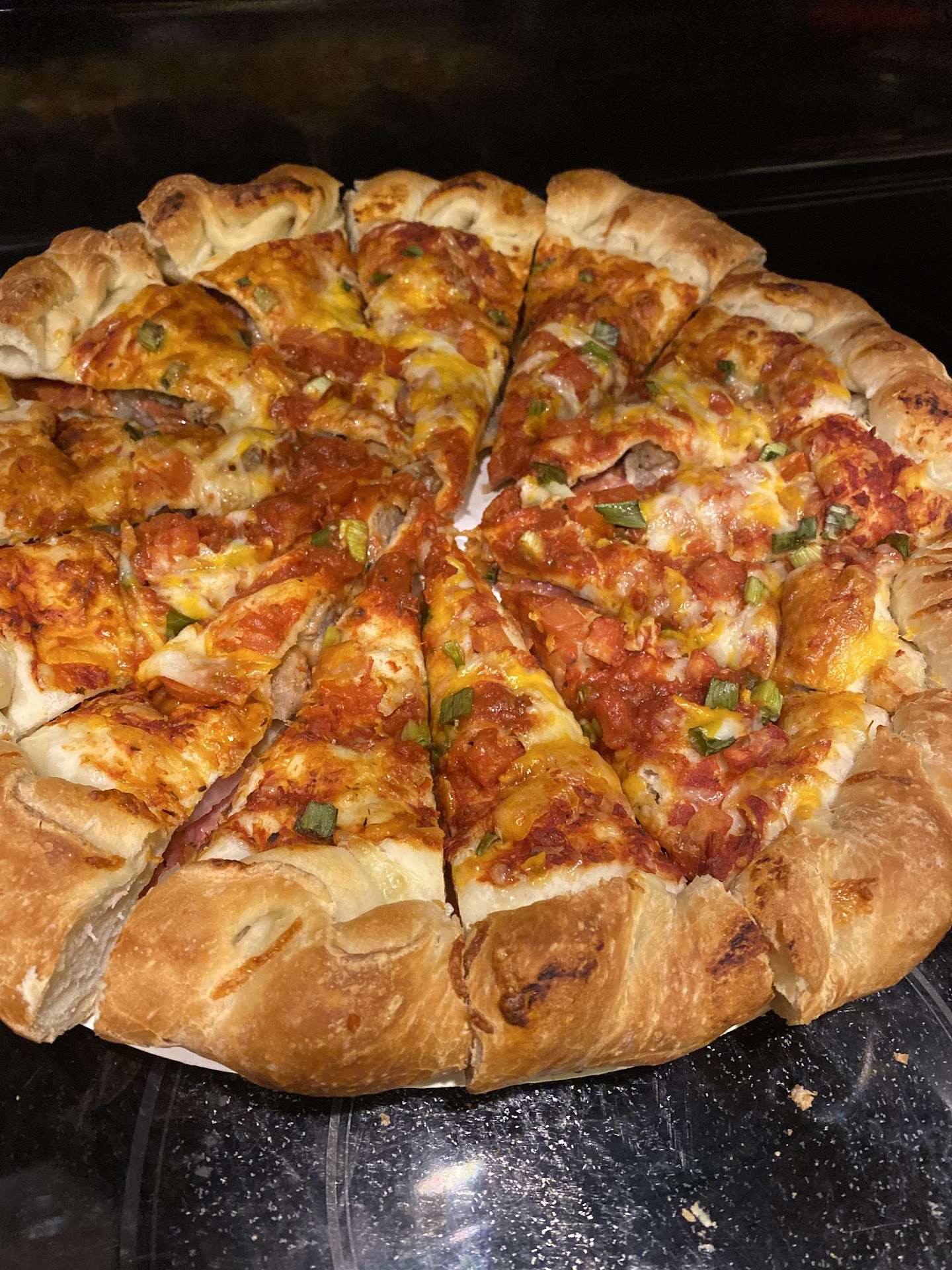Stuffed pizza for the win again tonight! đđźAnd we tried the cinnamon wheel. đ The dessert pizza wasnât cooked yet in the picture but I wanted to take a picture before we devoured the...
