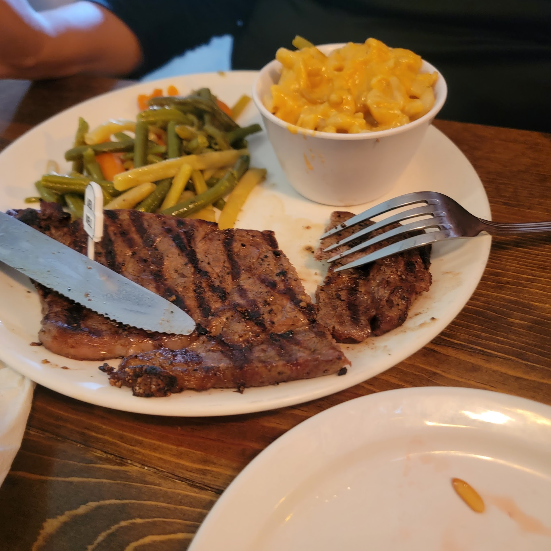 Came in from Phoenix to visit my dad. It’s a running joke that there isn’t hardly anything to chose from in Farmington in terms of places to go out to eat, so my dad suggested this since it had been 10 years since we had gone. Weren’t impressed the first time, even less impressed this time, and let me tell you why. For starters, I elected to order off the kids menu because it’s medically recommended to me by my HCP to do so because of a diagnosed stomach issue. Do I order off the adult menu? Occasionally, but majority of the time I either order off the kids menu or request a half/lunch portion. I order for my child, then proceeded to do so for me. The waitress in all her patronizing glory asks me “is the child’s steak finger portion for you ma’am” (and this already set me off because to be quite frank with you, she has 0 business asking me that) but to humor her and for the sake of not wasting my energy arguing with her, I said “yep it is”, so she proceeds to inform me that she “cannot do that” and offers an adult portion and, again, for the sake of not arguing with a wall and explaining a medical condition to the hall monitor of waitresses who would indubitably either continue to hall monitor the menu and state she’d need to check with management or tell me regardless she’d still be unable to do it (spoiler: if it’s medical, they have to) I said whatever and ordered the adult portion. Humor me, maybe it’ll be so good I’ll take it home for leftovers, eh? Wrong. It’s some of the most bland and slimy food I’ve ever had with TERRIBLE cuts of meat used. My 4yo who notoriously loves French fries was repulsed with hers which was confirmed by a taste test through my fiancé, and my dad’s prime rib was completely devoid of any flavor of any kind. The only person who had a reasonable plate come out was my fiancé and he ordered pasta which isn’t difficult by any measure to do correctly. Living in a substantially larger city for the last decade obviously offers better and more diverse food choices, but it also means I’m not very picky- at all. I can and will eat most things; I despise food waste and wasting money. But this was just entirely inedible and not once have I ever been told I cannot order off the children’s menu when the establishment doesn’t even offer a smaller portion- not even in little ole Farmington. That rule and the fact she (unfortunately didn’t have a name tag otherwise I’d be glad to include her name) so fervently enforced the “policy” is a clear window to what actually is the focus to this place: monetary gain with customer satisfaction as a mere afterthought, and even that may be sugarcoating...