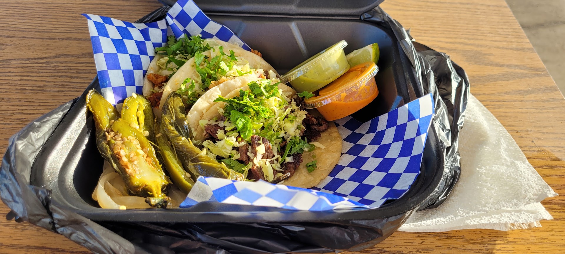 It’s a food cart in front of an old gas station, so no visible signs from the road. Not to worry, there is...