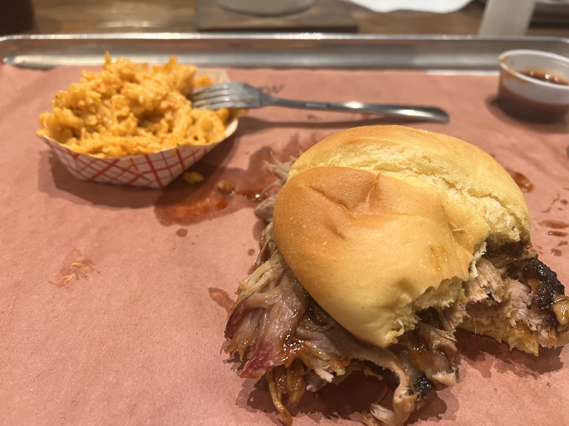 Read moreSome of the food was good some was terrible. I had the pulled pork sandwich. It was pretty good. I didn’t like the honey bbq sauce very well that I put on it. I liked the St. Louis sauce better. But nothing beats Bucees pulled pork sandwich. Those are to die for. Sadly I don’t live near a Bucees. I also had the potato/hashbrown casserole. I’ve always liked hashbrown casseroles but this one has pimento cheese in it which was gross. Would never had ordered it had I known it had pimento cheese. Yuck. The cinnamon roll pie shake was fabulous. My husband had the beef brisket sandwich. It was slices of beef and he said it was so burnt he couldn’t eat it. Those who had Mac-n-cheese said it was good. But I’ll bet it was made with pimento cheese too. So if you don’t like pimentos I would not get anything with cheese. I don’t live near any of these restaurants, but if I did I’d only get the cinnamon roll shake. We had gone to this restaurant because it was my husband’s brother’s favorite and we were there for his funeral and his daughter wanted to go there. Not horrible, but not good enough...