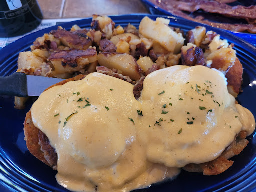 Smallish unassuming but HUGE on quality and quantity. Open till 2pm you can get breakfast as well as lunch. The biscuits and gravy were fresh, hot and delicious. Warm creamy white gravy and sausage over fresh biscuits served with your choice sausage patties, kielbasa bacon or ham. Plus potatoes, beans or fruit. If you are looking for a hearty filling meal to start the day this will get you thru. Wife got the cheeseburger and fries. Large with her choice of fresh vegetables and crispy fries. The other couple with us did the club sandwich with onion rings and all I can say is the onion rings were perfectly cooked, non greasy with plenty to share. His breakfast of eggs, potatoes, pancakes and beans was smelling so good I could have eaten his to.