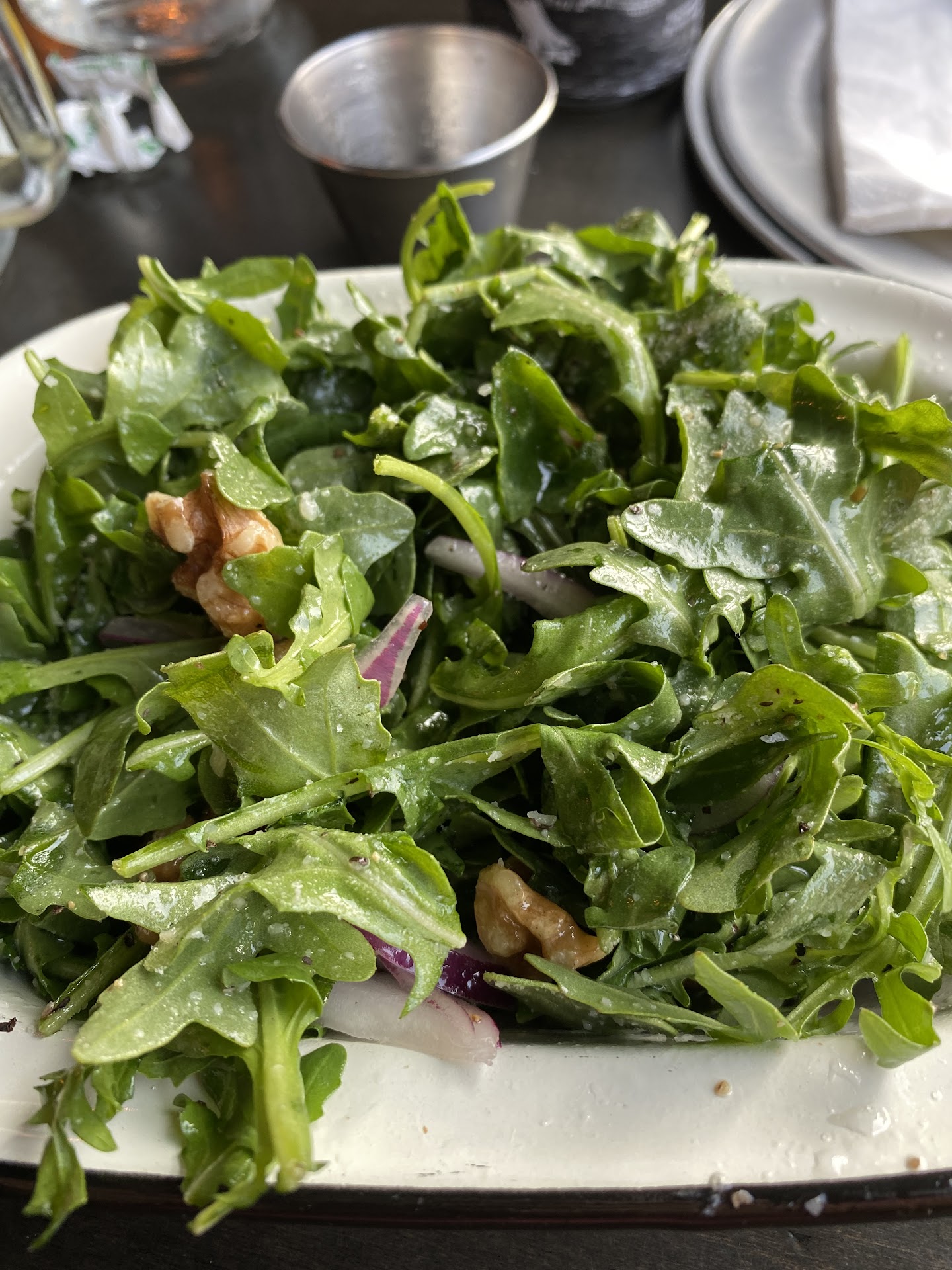 Read moreWe had the Arugula Salad, Bruschetta, and the Vinny pizza, and first and foremost the Salad and the Bruschetta looked and tasted amazing, and the only real complaint I have was that the mozzarella was desperately lacking in salt and didn't taste like it was made in house.
