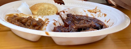 Read moreWe came here because the reviews were pretty good and the pictures looked appetizing. That was misleading. I ordered the chopped chicken, it was rather dry but had a smokey flavor. The coleslaw was slimy, fried okra was undercooked and lacked flavor, and the Mac & Cheese takes like velveeta shells and cheese. 🤢 My husband had brisket which was pretty good, but he didn't like the bbq sauce either. He took one bite of the Mac & Cheese and left it. Roll was hard and dry. He said his potato salad was good. Daughter had fried catfish, Mac, fries and the hush puppy. She loves Mac but didn't even eat that slop. Fries were cold and a bit undercooked, she took a bite of her catfish and almost gagged.