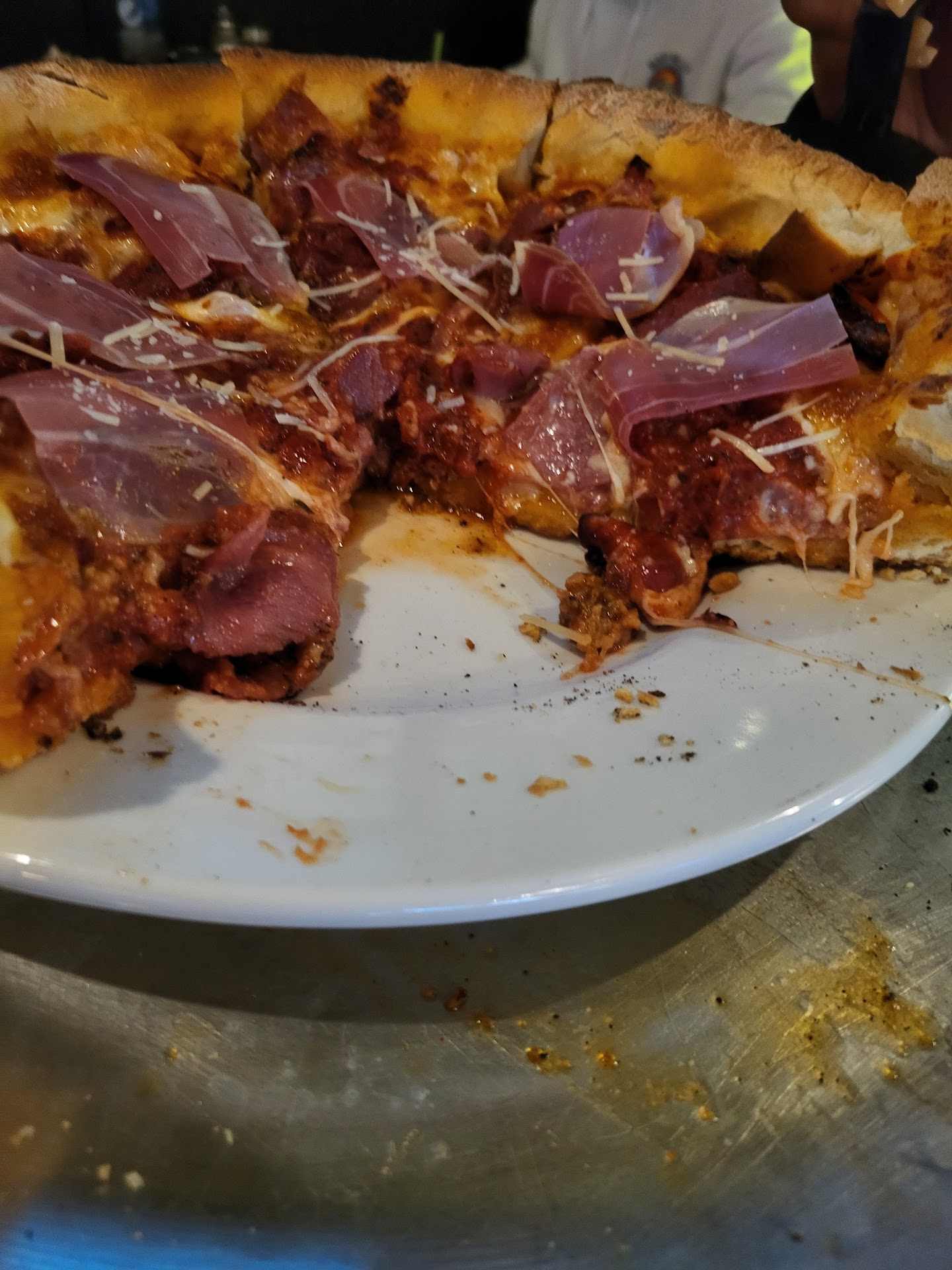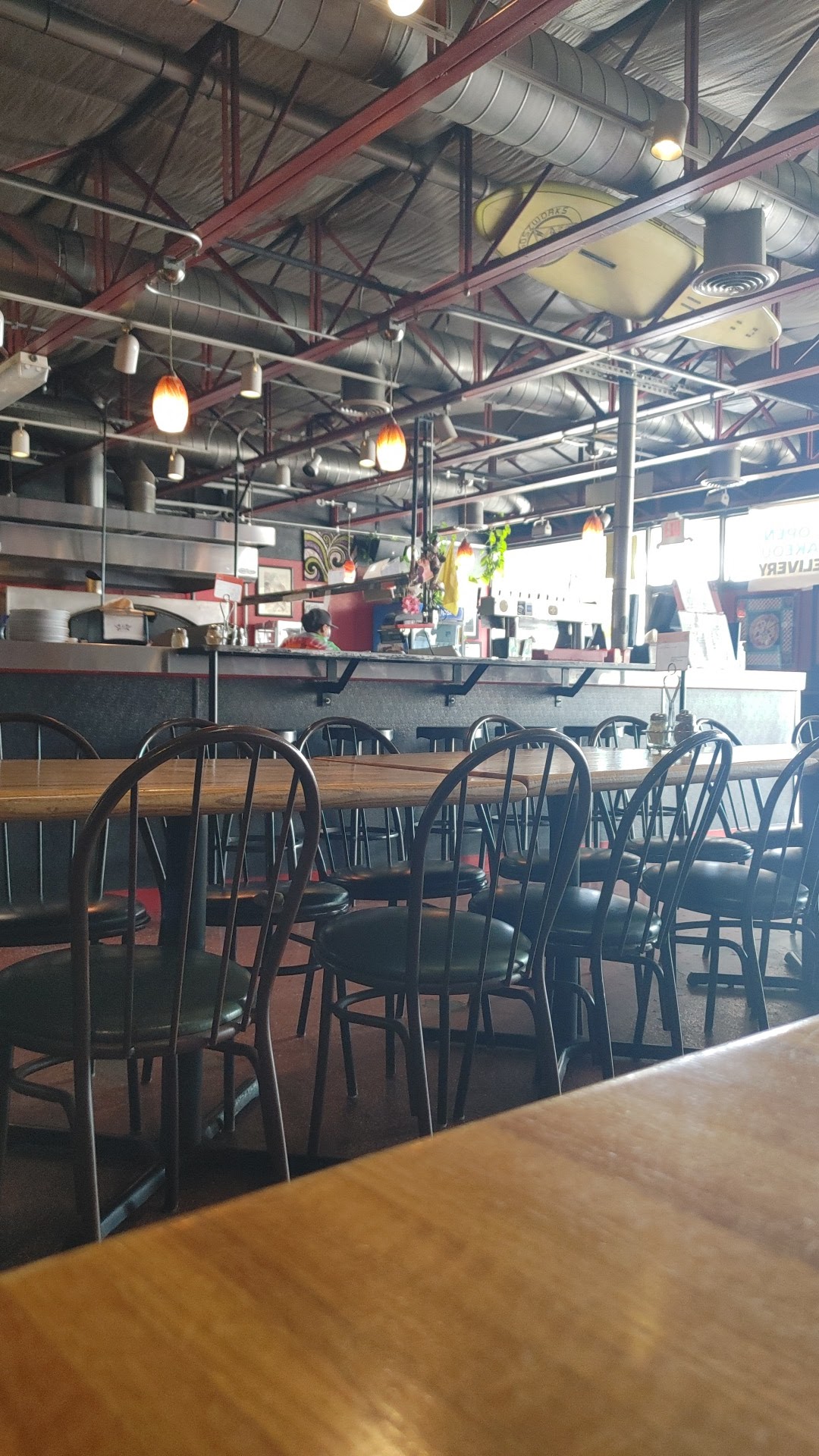 Read moreOverall, a 3 rating for the food. Service was good, place was busy but staff was friendly and attentive so they get a 5. Atmosphere was good, the music volume was right so you could hear it and yet still have a conversation, therefore it gets a 4. Pizza took what I would expect, about 20 mins. We ordered two 10 inch pizzas. One was a Rocky Marciano and the other was custom blackened chicken with olive oil, cheese, mushrooms and basil. For me they were over baked, the crust came out a little dry so it was crispy but there was no chew left to it. It also dried out the toppings which basically depleted the flavor and it made the chicken and mushrooms tough. Maybe it was a product of being busy and kitchen staff a little overwhelmed. I'd give it another chance if we happen to pass...