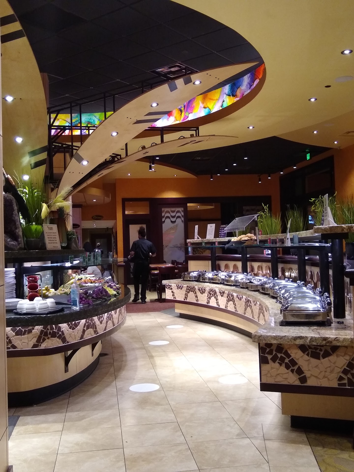 5 minutes pass no knives or waitress checking in on us after the water ordeal, 10 minutes pass and we flag down our waitress to ask for knives, we get some meat and pass on others that we would like to enjoy with the benefits of a knife to cut the meat. 15 minutes pass flag down a different waitress and ask for knives, a few minutes later we see her busy doing something else. Finally after 20 minutes of waiting we flag down a 3rd person who was carrying silverware to setup a table and finally get a knife. At this point the meat that we needed to have a knife to cut is cold and we have started seeing less servers and notice tables getting cleared and clothes not getting replaced. Our waitress asks us if we want dessert yes we politely answer no that we would still enjoy the different meat they offer because we finally just got knives. After this we see 2 more servers with meat and decide to end this night.