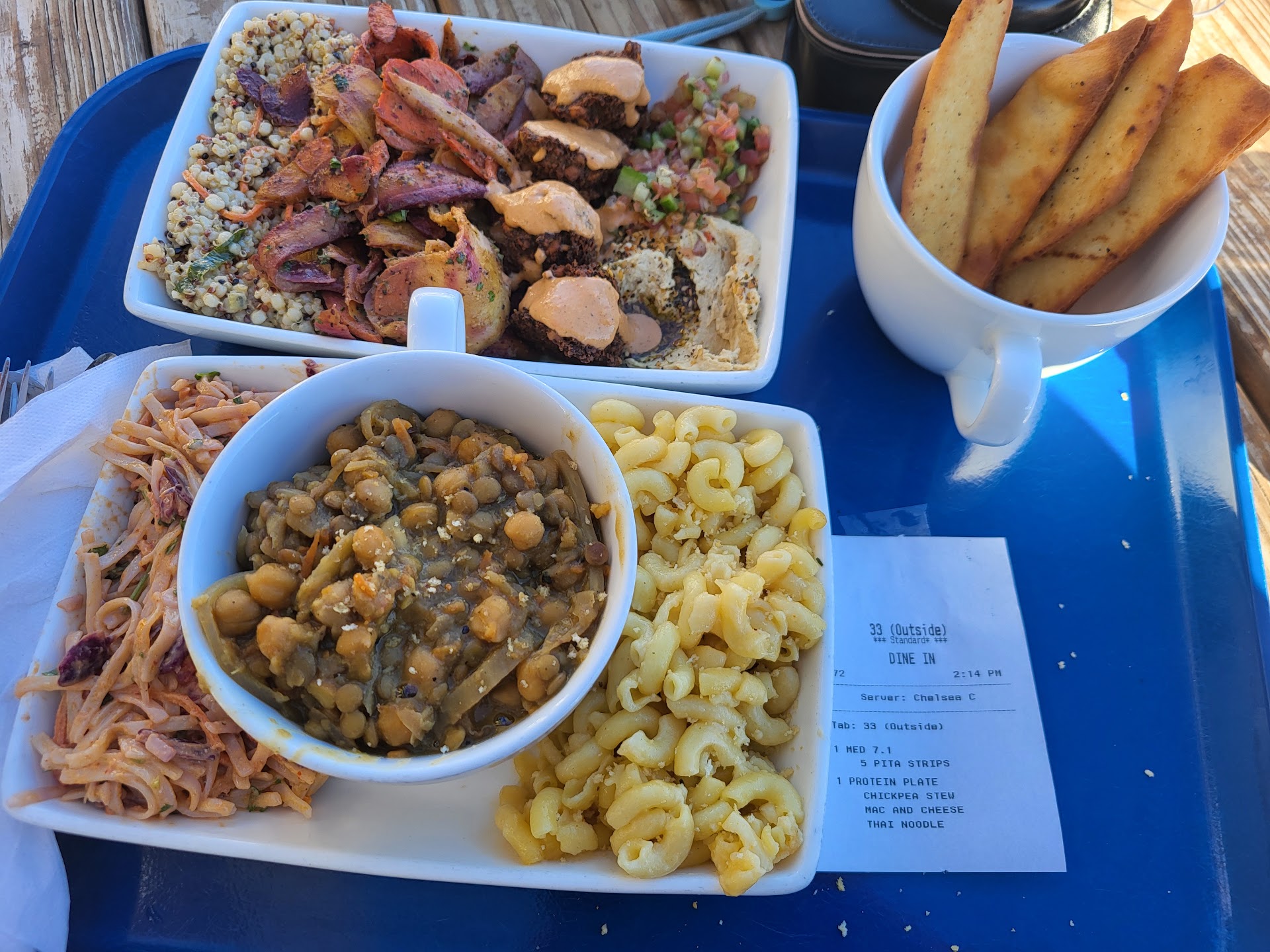 ย ย ย Read moreYum! My husband and I tried this place out and I'm very happy we did. He got the Med 6.0 bowl/plate and I got the High Tide bowl/plate. We both got the warm naan on the side. The naan was a small piece but for $1.50 extra I should have expected the smaller size honestly. The fried pita strips that came with my husband's plate were delicious. He liked his food, especially the falafel but felt like the sides that came with it would have been better served hot instead of cold. I got the High Tide plate which said it came with trout but I got a piece of salmon unexpectedly. Wasn't upset about it because I definitely prefer salmon over trout but not sure what happened there (thanks for the reply Vessel kitchen! I've only had other types of trout so I didn't realize steelhead tasted and looked so similar to salmon! It was great and much better than other types of trout I've had before!). The spaghetti squash and cider slaw that came with it were delicious and I loved the green sauce on top. Prices felt right for the dishes and I love that this is a "fast food" place. They have stainless steel cups for drinking water and even "real" silverware to reduce plastic use which is great. Lovely food, quick dine and didn't feel like we had to add some ginormous tip like so many places expect for doing the bare minimum lately. This place feels fresh and much needed. We will...