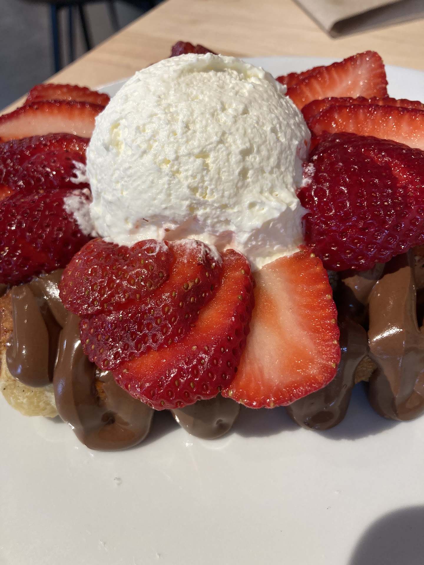 One of the most popular items on the menu is the "Red Wonder" waffle, which features a delicious blend of strawberries, whipped cream, and cream cheese frosting. Another must-try item is the "Nutella Love" waffle, which is loaded with Nutella, fresh bananas, and whipped cream.