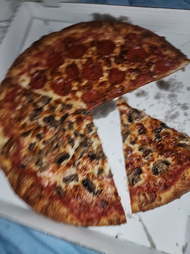 Read moreSaw their banner flapping in the breeze... ya ya it's awesome they know what they're talking about ya ya... these pizzas are puffy and spicy and well seasoned... very cheesy and steamy... ya ya who's ya ya isn't that a grandpa? Pizza crust was different says the child... wife says what did we get and girl says dog is eating a blueberry but this football team is hooting an hollering. .. I don't normally write the reviews but when i do the girl says it's not as good... why do all these pizza places have baby jails and are they for babies or adults but I never did see any babies in there. So if you buy a pizza and say ya ya you can go on the good part of the baby jail where the toys are and if you go on the no no side then it's exposed to the elements and your toys be sun faded. Overall ya ya very good...