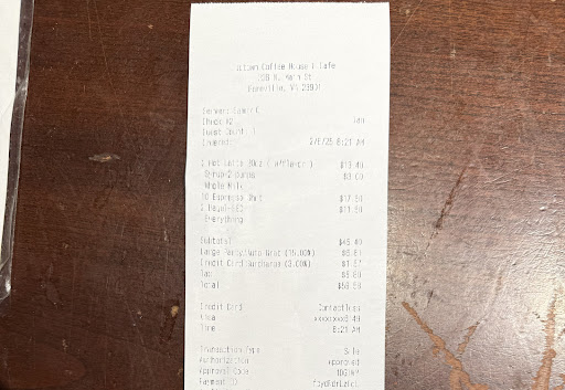 I looked at the receipt and noticed the lady didn’t charge me correctly. When I went up to speak with her about it, she was unwilling to take a look at it. She was more condescending and not explanatory of the charges. I was charged $13.40 for 2 flavored lattes An additional $3.00 for syrup An additional $17.50 for 10 shots of espresso (Last I knew, a latte comes with espresso) That would be $33.90 just for coffee, definitely a mistake. She didn’t overcharge on the sausage egg and cheese. To top it off, when you look at the receipt, I was charged for a large party gratuity $6.81 (for two people) Rather than explain or fix any of this, the two staff members became argumentative to the point I asked for my money to be returned. Felt like I was spoken to like a child, from children who are incompetent.