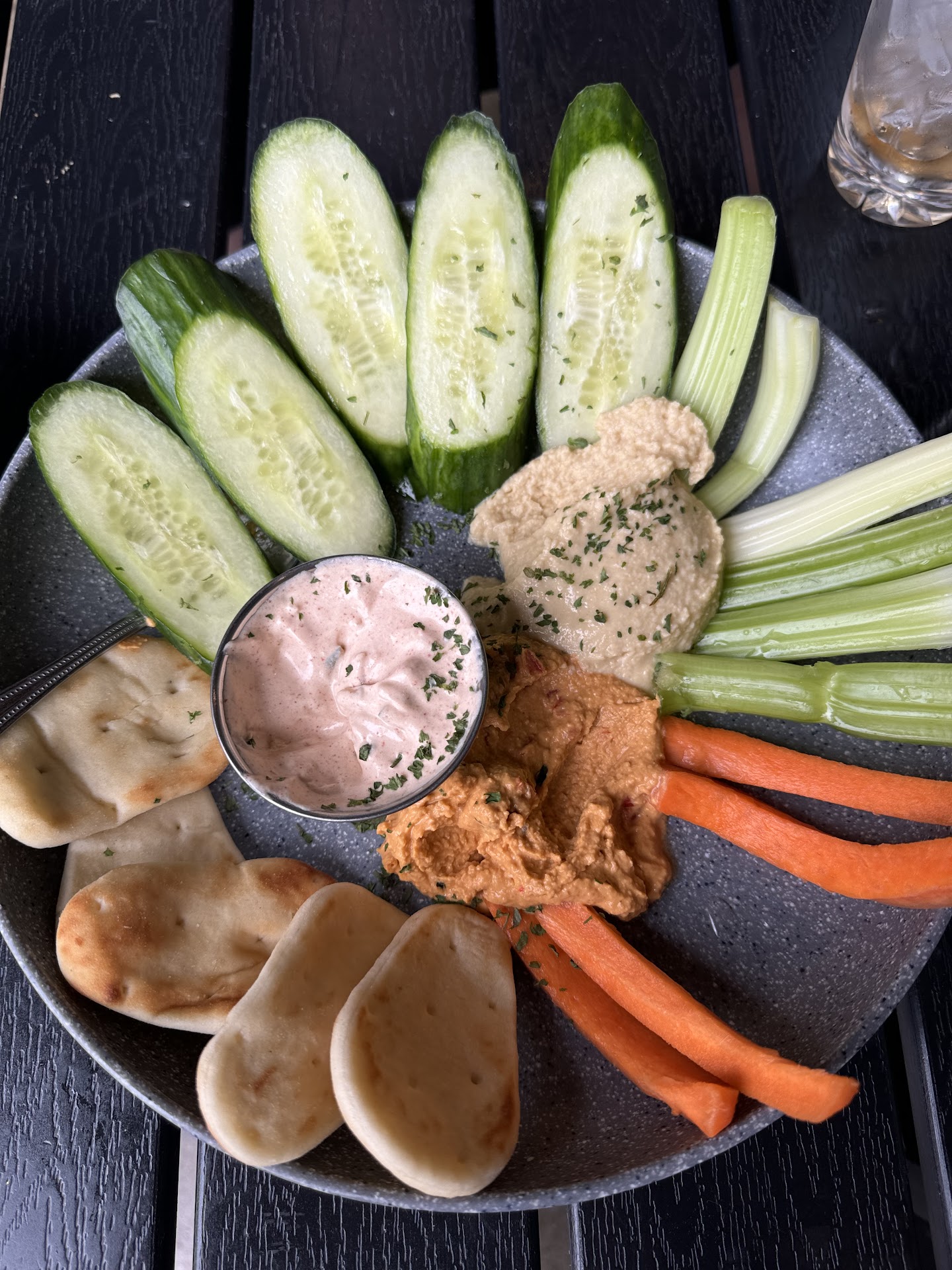 Lots of steps with 4 distinct drinking and dining lounge areas. Outside dining garden looked great. Alas, weather was chilly and raining, so no dining outdoors this night. If you have, physical or mobility challenges, getting around will be a bit of a project to navigate.